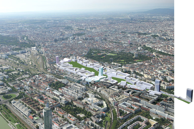 Städtebaulicher Wettbewerb März 2008, 1. Rang; Masterplan und Leitbild 2009/2010; Testplanungen 2011/2012; Umweltverträglichkeitsprüfung und Arealwidmung 2015/2016; erste Realisierungen ab 2018/2020