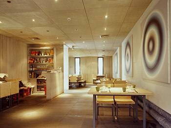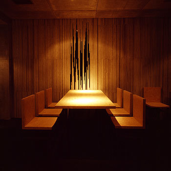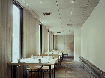 This is a restaurant with a total floor area of 230 m2, location to the south of the Agricultural Exhibition Hall in Beijing. It is a renovation of an old building with one newly constructed part. The new exterior wall comprises laminated cement fiberboards, each 10 mm thick and 300 mm wide, combined with steel plate and glass. This 300 mm-thick laminated wall acts as both the structure and the interior finished. The interior atmosphere is created by exterior daylight being weakened as it passes through the thickness of the glass. It was completed in forty days.