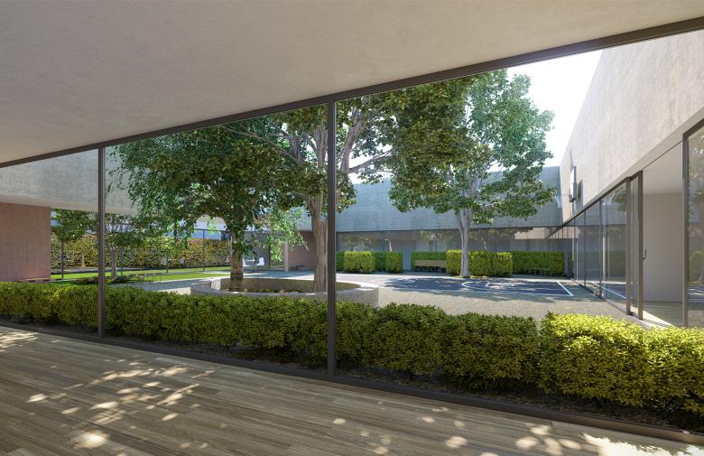 Im Rahmen des Architekturwettbewerbes für eine neue Forensikstation auf dem Klinikareal der Psychiatrie St. Gallen Nord reichte FELIX PARTNER ein Projekt ein, das sich am Klosterplan anlehnt. Rückgrat der Anlage bilden die Elemente Mauer, Zelle, Kreuzgang, Hof und Garten. Die Wohnbereiche und Patientenzimmer sind in einer Art Kreuzgang um den Spazierhof angeordnet, dem zentralen Ort der Gemeinschaft. Die gesamte Anlage wird von einer begrünten «Klostermauer» von der Aussenwelt abgeschlossen. Zwischen Mauer und Gebäude sind Gärten angelegt, dich nicht betretbar sind, sondern als konfliktfreier Aussenraum vor den Patientenzimmern dienen. Naturnah gestaltet sollen sie, wie die gesamte Station, beruhigend und therapeutisch wirken.