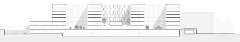 Ziel: In der neuen räumlichen Disposition greifen die Volumina die klare kubische Baustruktur der Umgebung auf und führen die raumbildenden Baulinien weiter. So entsteht ein eindeutiger städtebaulicher Auftritt mit einer klaren Adressbildung durch Aufnahme der Hauptzugangsachse in Ost-West-Richtung.