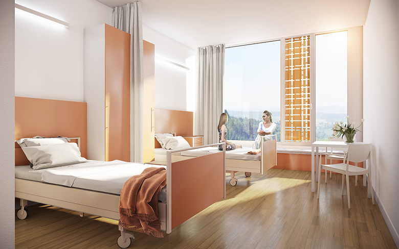 fsp: Zur Erreichung einer maximalen betrieblichen Effizienz wurden die Kriterien der Lean-Hospital-Strategie angewandt. Besonders hervorzuheben ist die Unterbringung aller funktional zusammenhängender Funktionsflächen auf einer Ebene im Erdgeschoss.