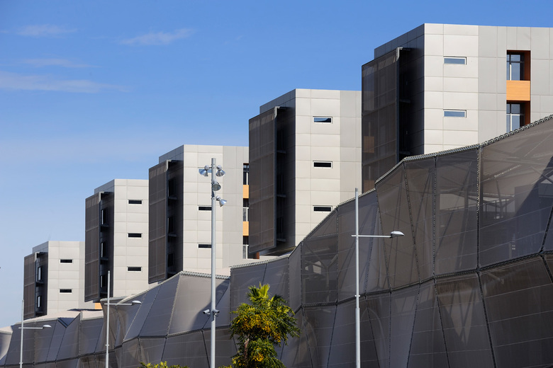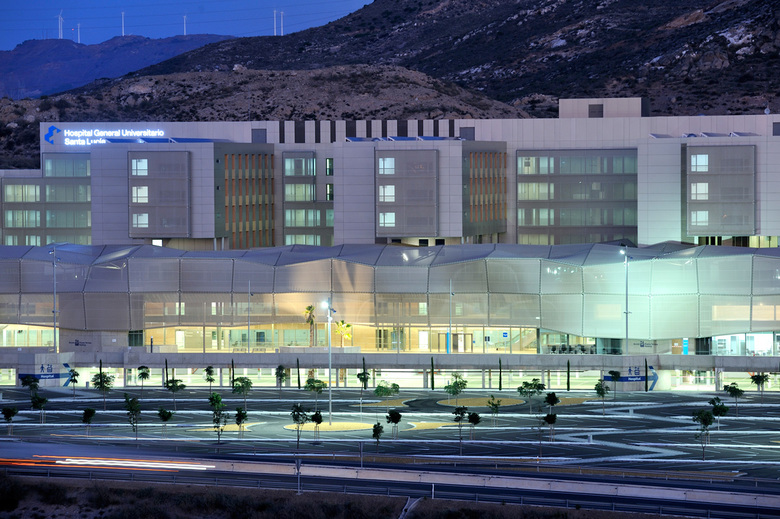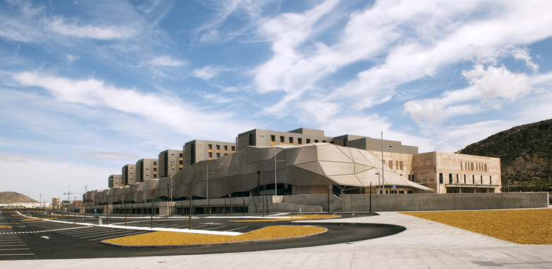 University hospital with 630 beds. In addition to medical services, the project also includes sports facilities, shops and leisure amenities for the community. The general concourse is an unheated shade structure marking transition to the inside, extending to the roof where the shops, leisure and sports facilities are located. The extensive implementation of solar panels, water reuse, efficient engineering systems and sustainable materials earned the building LEED Gold certification.