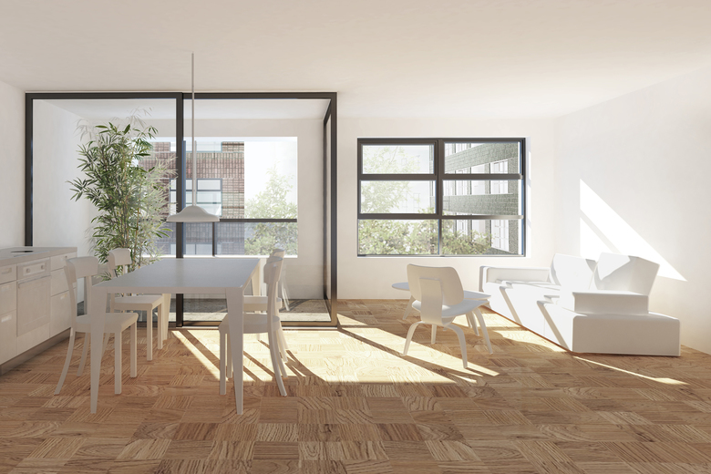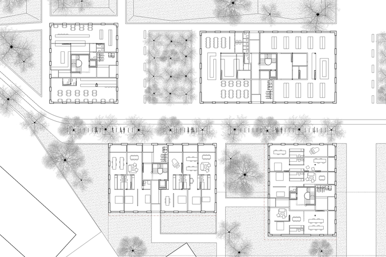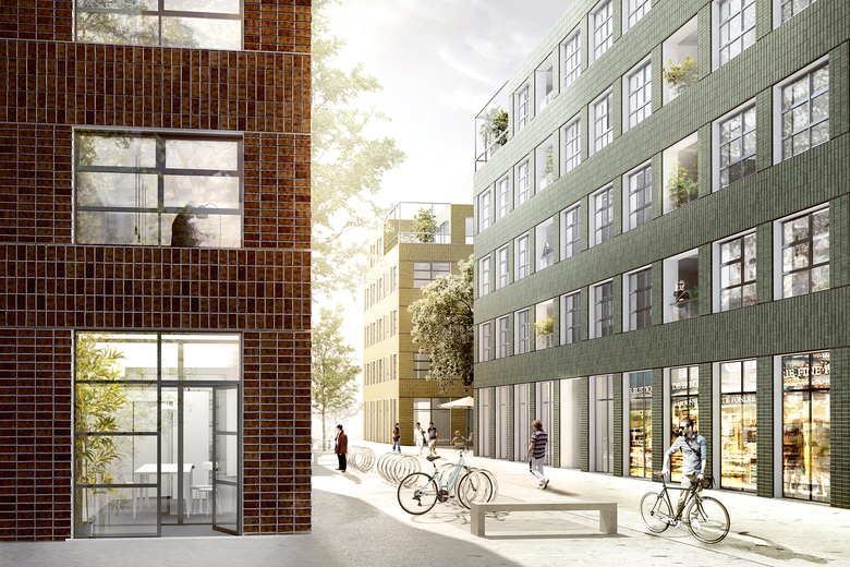 A special feature of the concept is the mix of different housing types and standards, from mini-lofts designed for flexible use to family apartments to penthouse units. Facilities for the general public are teamed with the mini-lofts, which are modeled on Dutch examples, to enliven the ground floor of the urban building ensemble: deep apartments with exceptional ceiling heights each combine a studio or workshop space with a living area, thus making them ideal for artists, students, or young entrepreneurs who can open their first office here.