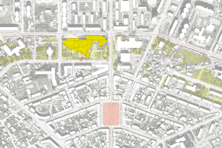 It was decided that the main intervention should be one that would serve the city and its residents, a social activator that would represent today's changing conditions. Through analysis and local consultation it was determined that trying to complete the existing megastructure would not work as such a project would be suited to a city more than ten times Nikšić's size. Therefore a strategy was developed which could take the existing built structure as a starting point, and with minimal interventions and insertions a new type of urban space could be developed. With the introduction of a large underground parking, Dom becomes an urban infrastructure making it a gateway into the city. It allows the old city to become pedestrian friendly, and frees the urban surfaces for cafe seating, pedestrian exploration and playground for children. The visitors who arrive by automobile are free to enter Dom and explore the social spaces to the north, or to exit to the south and explore the city beyond.