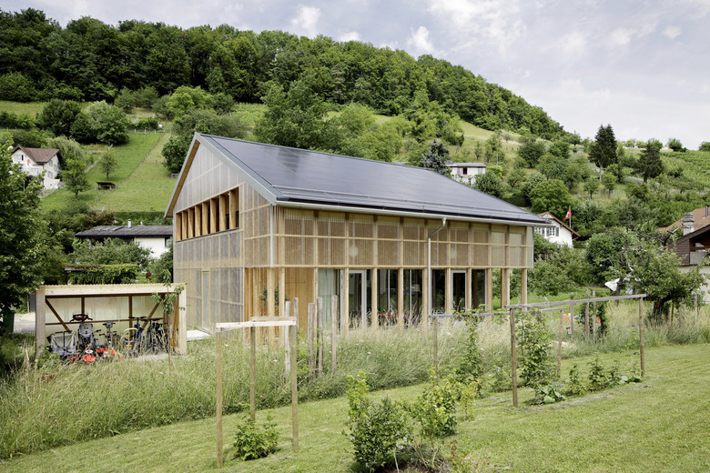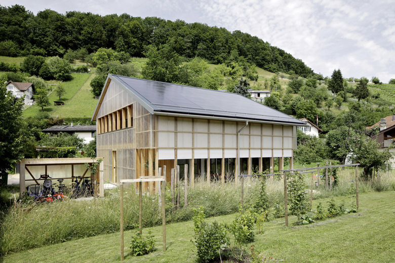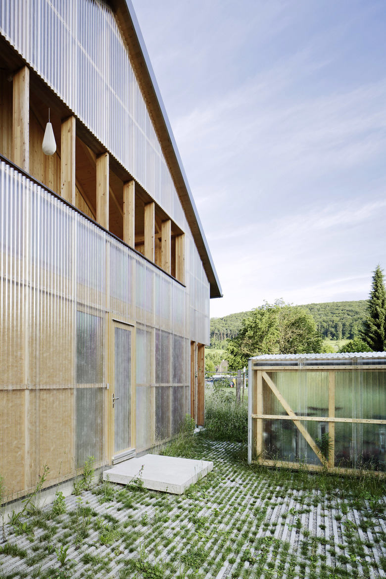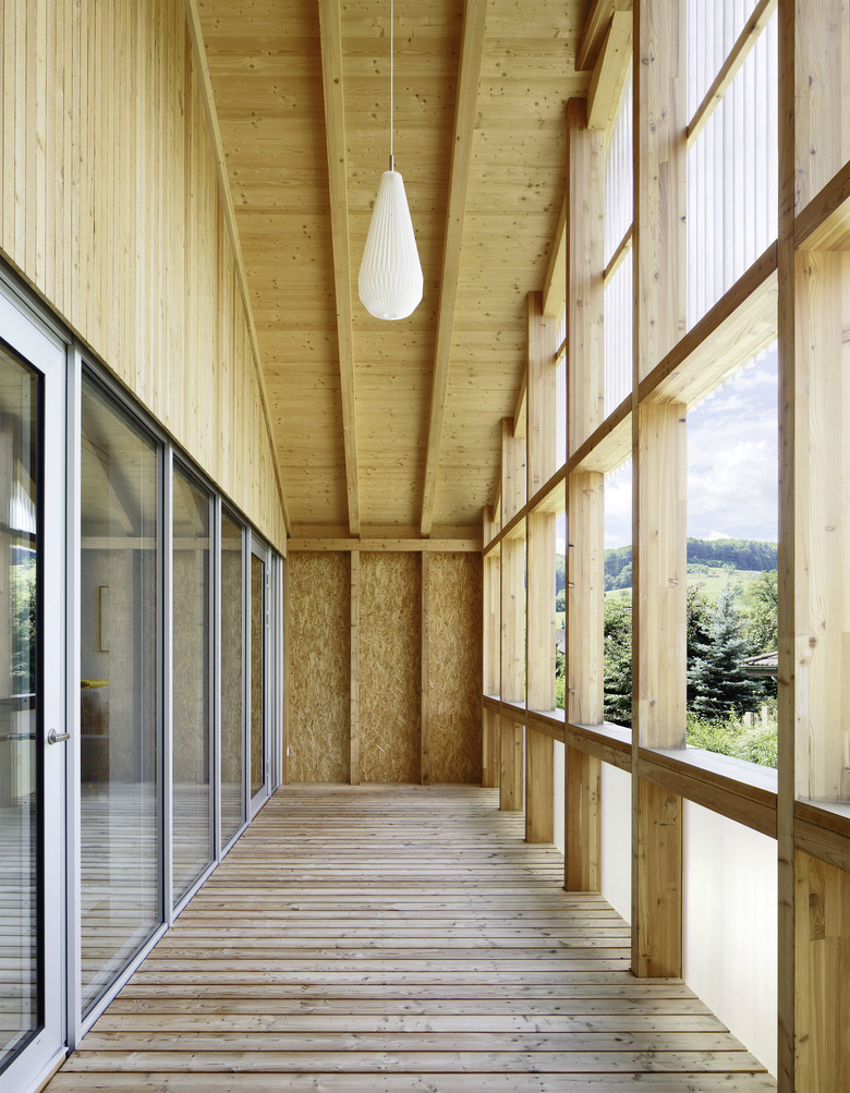 For economic reasons the house has only a foundation and no basement, something rather unusual for Swiss standards. The clients demand for favorable operating costs and high ecological standards is achieved with photovoltaic panels integrated in the roof and a geothermal exchanger. The small budget was met by a high use of prefabricated elements, and a contractor specialized in prefab houses.