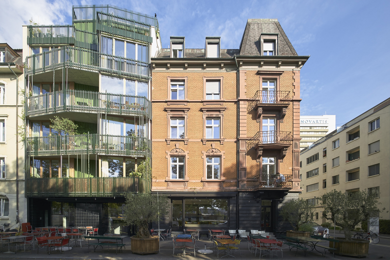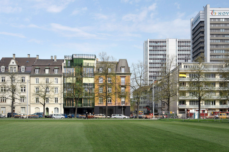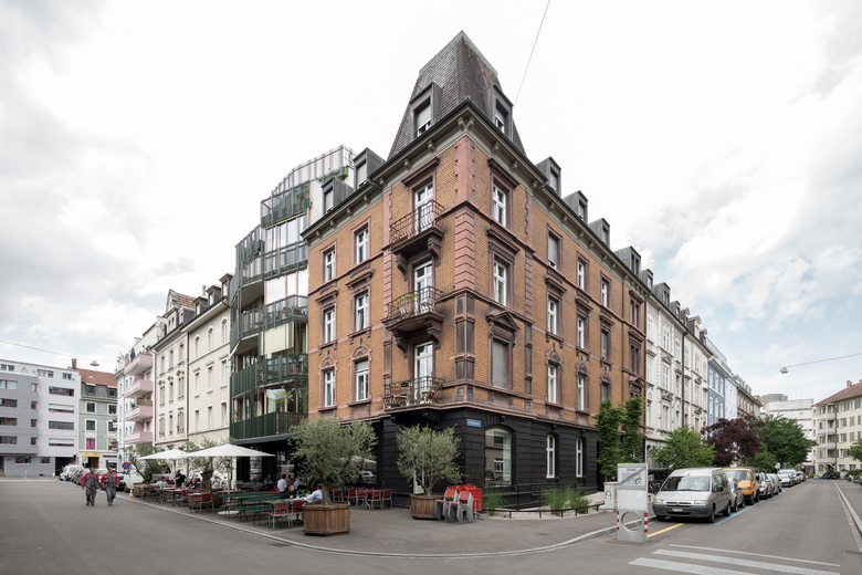 One of the qualities of the residential and industrial area of St. Johann in Basel is the close coexistence of old and new buildings. This coexistence is kept and emphasized in this project, only one of the four existing houses of the corner parcel, Lichtstrasse 9, has been built anew; while others, Lichtstrasse 11 and Kraftstrasse 1, have been renovated and benefit from the newly built infrastructure.