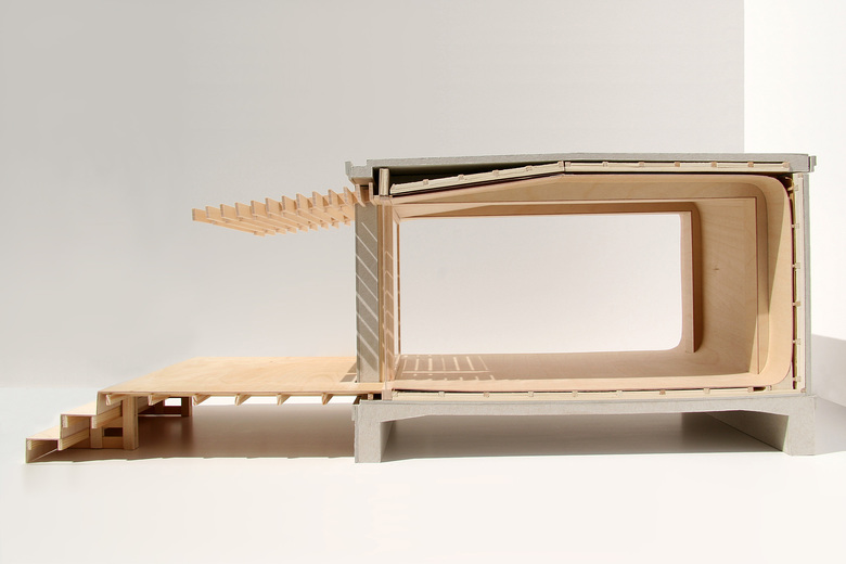 As a landmark building designed by the famous Swiss architect Hans Bernoulli, every intervention must be reversible. The project reacts to that requirement; the construction of the interior wood facing maintains a minimal number of connections to the original structure.