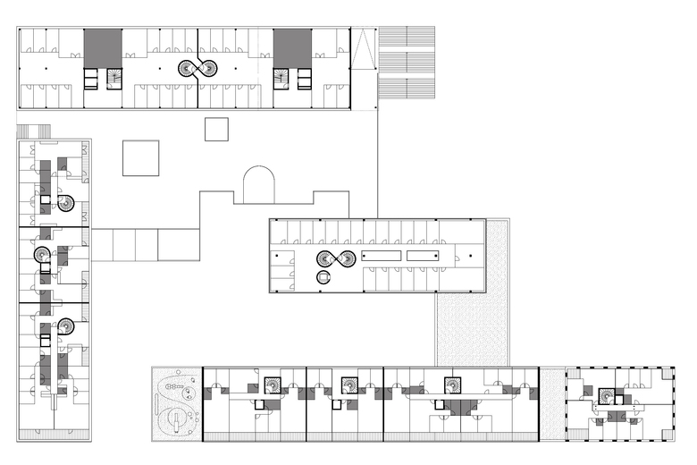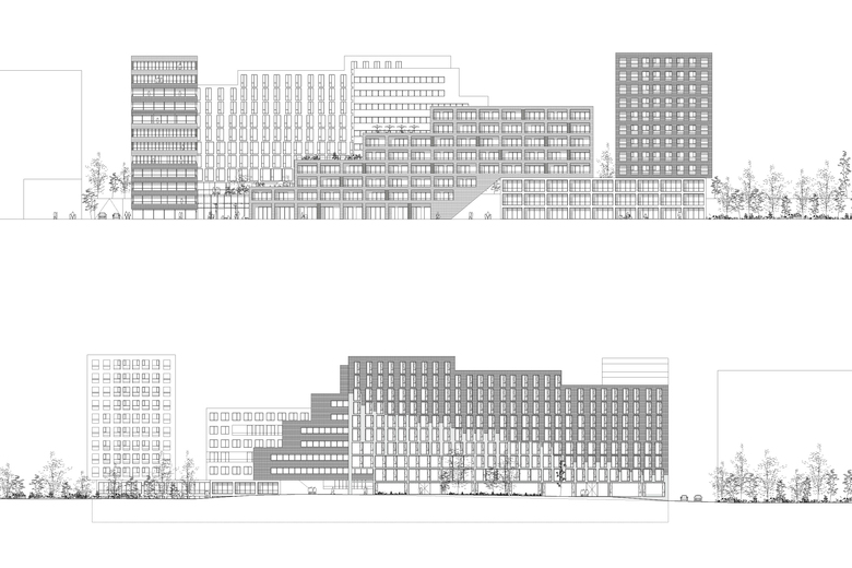 The urban block with a total of 35'000 m2 offers a large variety of public and private programs. Organization and openness of the block allow for optimal sun light conditions and views to the water and the city.