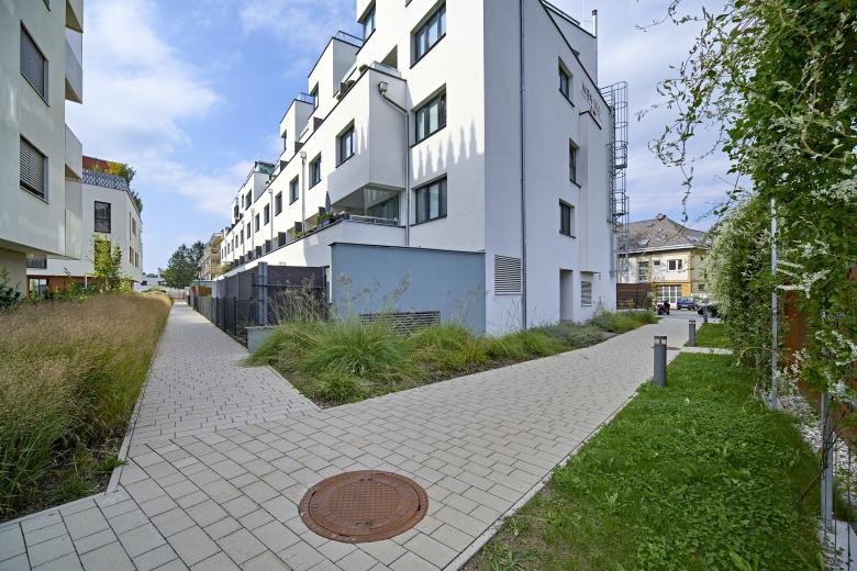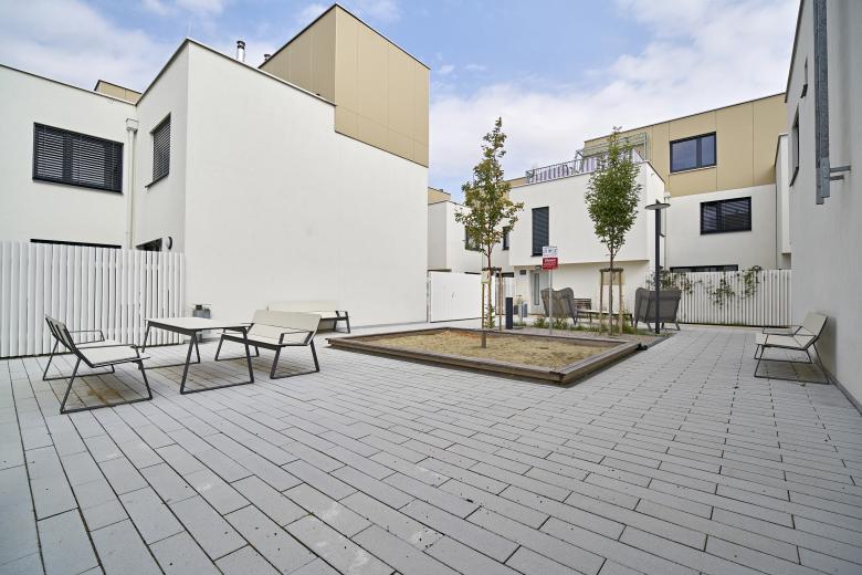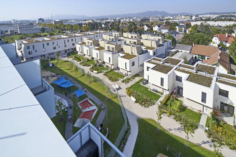 Ein an der Carlberger und Erlaaerstraße gelegenes Wohngebiet mit Wohnclustern und dazugehörigen Mietergärten, Geschäftslokalen und Quartiersplätzen sowie vielseitig nutzbaren Gewerberäumlichkeiten.