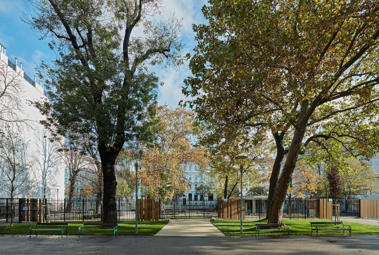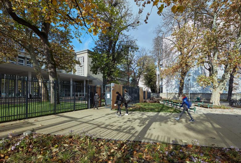 Das Lycée français de Vienne ist eine von 488 französischen Schulen im Ausland, die das französische Schulnetzwerk AEFE (Agence pour l’Enseignement Français à l’Étranger) bilden. Die Bildungseinrichtung steht unter der Schirmherrschaft der AEFE und unterliegt den Weisungen des französischen Botschafters in Österreich und des Schulleiters. In der ersten Bauphase des Freiraumkonzeptes wurden auf dem Vorplatz unterschiedlichste Pflanzbeete verwirklicht. Der Platanenplatz in der Mitte bildet den gesellschaftlichen Treffpunkt vor der Schule.Darüber erstreckt sich ein Weg aus beige und quarzfarbigem Terraway, der wunderbar mit dem Fassadenstil der Schule harmoniert. Rechts und links davon erstrecken sich zwei grüne Rollrasenflächen. Im Osten sind die modern angelegten Fahrradabstellplätze und Scooter Parkplätze auf einer wassergebundenen Decke situiert. In einer zweiten Bauphase sollen ein Wasserbecken, Sitzgelegenheiten in Form von innovativen Holzdecks folgen.