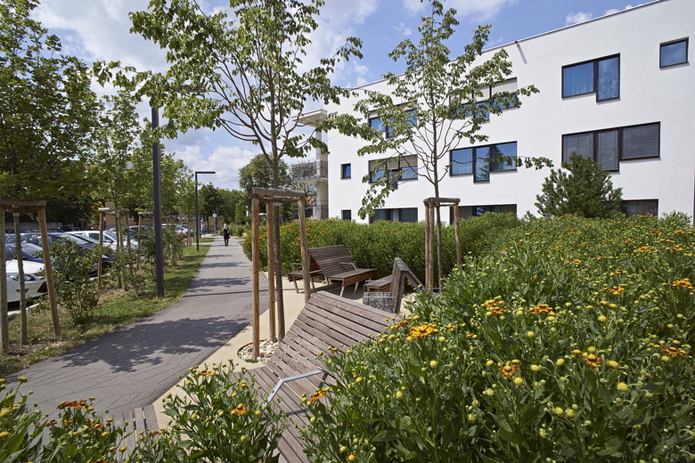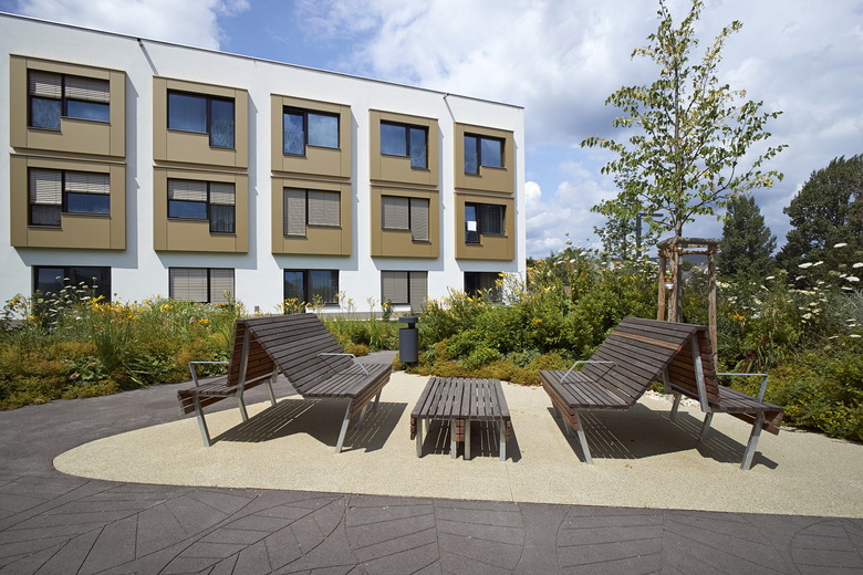 Der Schösslwald hat für die Stadt Baden als Luftkurort und Weinbauregion eine große klimatische Bedeutung. Er ist aber auch therapeutisch bedeutend als Ort der Ruhe und Stille, der Regeneration und der Heilpflanzen. Fernab vom Landesklinikum Baden, steht er aber in Sichtbeziehung zu diesem. Und die PatientInnen können im Klinikpark den „Wald“ in Form von dicht bepflanzten, individuell gestalteten Erholungsoasen genießen, die sich in ihrer Formensprache von den solitären Baukörpern ableiten.