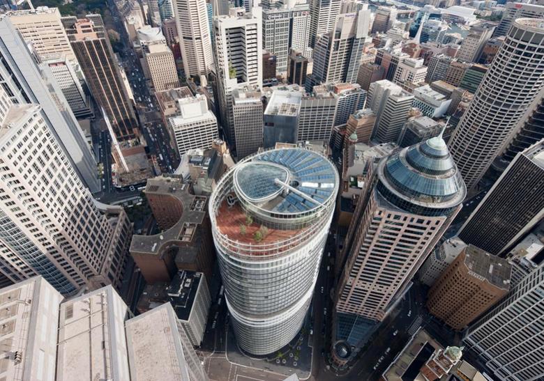 Das Hochhaus 1 Bligh in Sydneys Finanzviertel, insbesondere von der Harbour Bridge bestens zu sehen, eine markante Ergänzung der Skyline von Australiens belebtester Stadt. Australiens erster wirklich „grüner“ Wolkenkratzer ragt mit 28 Stockwerken in eine Höhe von 139 m – eine Verbindung von Nachhaltigkeit, Flächeneffizienz, sorgfältigster Integration in die umliegende urbane Textur und nicht zuletzt einem spektakulären Panoramablick auf den Hafen, den die Mitarbeiter dank der elliptischen Gebäudeform von nahezu jedem Büroraum aus genießen können.