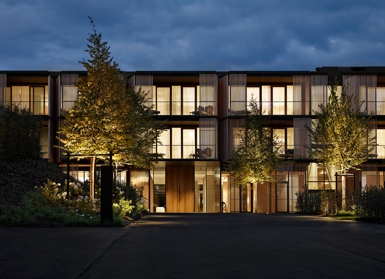Die Gästezimmer folgen der Idee, dass jeder Gast einen ganz eigenen Rückzugsort haben sollte. Naturmaterialien unterstreichen den therapeutischen Effekt des Aufenthalts sind Teil eines ganzheitlichen Denkens in Richtung einer heilsamen, gesundheitsfördernden Architektur, die einen Schwerpunkt auf baubiologische Erkenntnisse setzt, um ihren Teil zur Gesundung beizutragen. Alle architektonischen Entscheidungen stehen im Einklang mit den Kriterien der Deutschen Gesellschaft für Nachhaltiges Bauen (DNGB). Für die Fassaden wurden überwiegend naturbelassene und unbehandelte Materialien verwendet, beispielsweise Lärche aus zertifizierten nachwachsenden Standorten. Holzflächen und eine Klaviatur aus weißen und warmen Farbtönen ergeben ein kontemplatives Ambiente in den Behandlungs- und Gemeinschaftsräumen. Die helle Farben und die schlichte Eleganz des Interieur unterstreichen die friedvolle, freundliche Atmosphäre der Räume, deren deckenhohe Fenster und großzügigen Loggien einen Panoramablick auf das Tegernseer Tal freigeben.