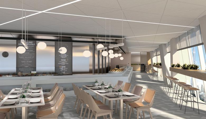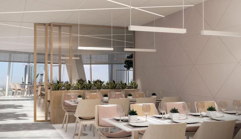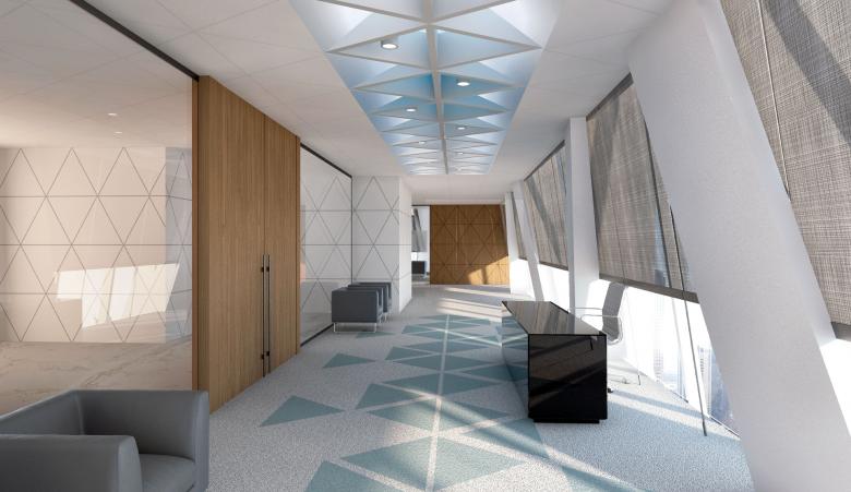 Private Offices benefit from great views of the city and lagoon, and hold a distinctive touch of class and elegance that each tenant can customize according to their needs and taste. Floors, walls and ceilings feature geometric patterns which break with any sort of monotony and keep tenants motivated to perform their jobs. Break areas in the 3rd and 4th floors include a cafeteria and a gym to provide a healthy, active lifestyle for all occupants.