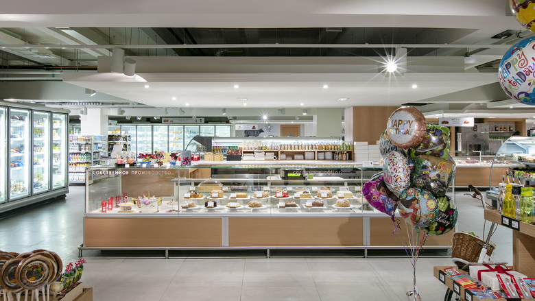 A boutique mall dedicated to cater high-quality home appliances and a food and drinks supermarket comprised of several spaces, with a high-standard selection of products and brands unique to Kazakhstan. The interior design proposal for the grocery store is based around providing a better shopping experience for customers and let the gastronomic selection speak for itself, highlighting the gourmet qualities of the products sold in the market in a modern appearance and a neutral palette.