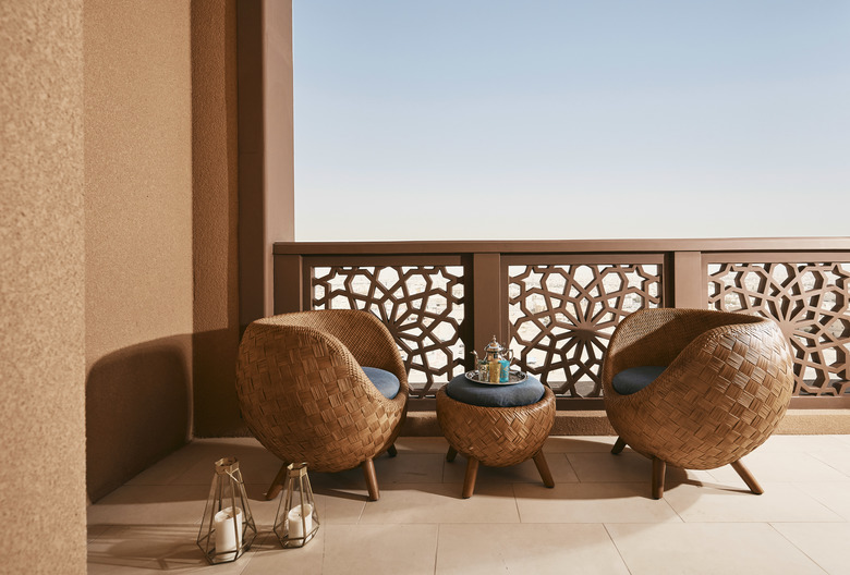 The interior design of the Shaza Hotels brand is inspired by the cultures and tales of the Silk Route but offering a contemporary and luxurious twist from the traditional architecture, art, values and hospitality of the region. For Shaza Riyadh Residences, the design concept is strongly linked to the neighboring Grand Mosque of Al Rajhi, the most important in the city influenced by Spanish and Moroccan architecture. The Andalusian riad, a type of traditional construction with the courtyard as a centerpoint, is mirrored in the interior design, with the inclusion of luscious greenery and water elements as well as Arab lattices and Moorish arches present in walls and ceilings.