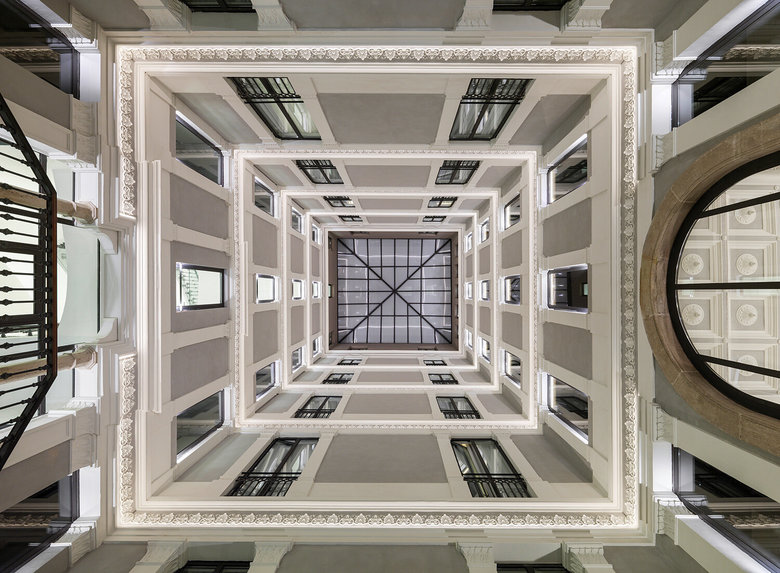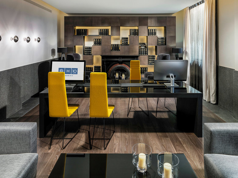 El hotel, cuyo edificio original data de 1896 y ha sido totalmente rehabilitado por el reconocido estudio de arquitectura GCA Arquitectos, ofrece también dos salones de reuniones con luz natural, el salón-biblioteca, un espacio multifuncional con business corner y un jardín interior de diseño con terraza en el patio de isla típico del Eixample barcelonés. Esta agradable terraza, presidida por una impresionante palmera y un moderno jardín vertical, es uno de los lugares más carismáticos del establecimiento.