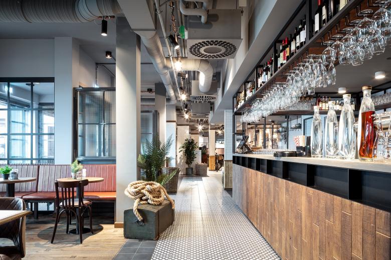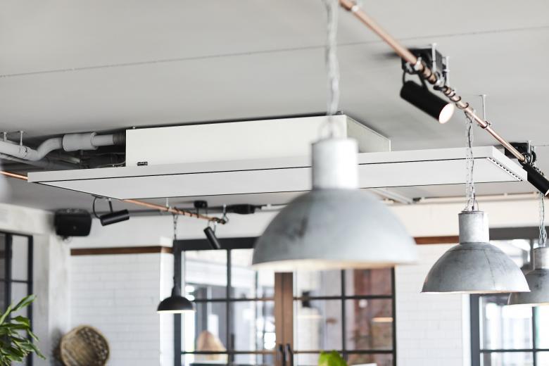 Eine der Herausforderungen stellt das Zusammenspiel von relativer Feuchte und unterschiedlich hoher Wärmebelastung dar - hier kann die Umluftkühleinheit INDULVENT ec für ausgeglichene klimatische Verhältnisse auch in größeren Räumen sorgen. Um den Komfort der Besucher zu gewährleisten ist eine zugfreie Lufteinbringung unumgänglich, dies wird durch eine fächerartige Raumluftströmung über die Frontplatte des Decken-Luftdurchlass INDUDRALL KQ realisiert. Das Akustiksegelsystem INDUSAIL SYSTEM löst im vorliegenden Anwendungsfall gleich vier Aufgaben im Restaurantbereich Landgang auf einmal: Kühlung, Schallabsorption, Zulufteinbringung und Lichtreflexion.