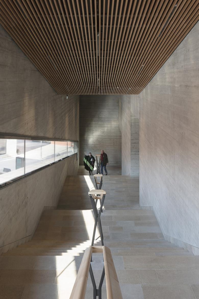 Zahlreiche Restaurants und Geschäfte in den Erdgeschosszonen des neuen Quartiers beleben heute den Stadtraum. Aus diesem Grund ist auch das Erdgeschoss des Museums als großer öffentlicher Raum konzipiert mit Mediathek, Auditorium, Museumsshop und Café. Betritt man das Museum, ist der Weg nach oben durch eine breite Kaskadentreppe aus rauem Sichtbeton eindrucksvoll inszeniert. Ein durchgehendes Fensterband flankiert die Treppe und begleitet den Besucher mit Ausblick zur Stadt nach oben. Eine edle Holzlamellendecke aus Buchenholz und ein Holzhandlauf sowie ein hochwertiger Steinfußboden verbinden sich mit dem rauen Sichtbeton der Wände zu einer ausdrucksstarken Materialkomposition. Im ersten und zweiten Obergeschoss wird die Geschichte Italiens des 20. Jahrhunderts präsentiert, das dritte Obergeschoss ist – mit Tageslicht von oben – Wechselausstellungen vorbehalten.