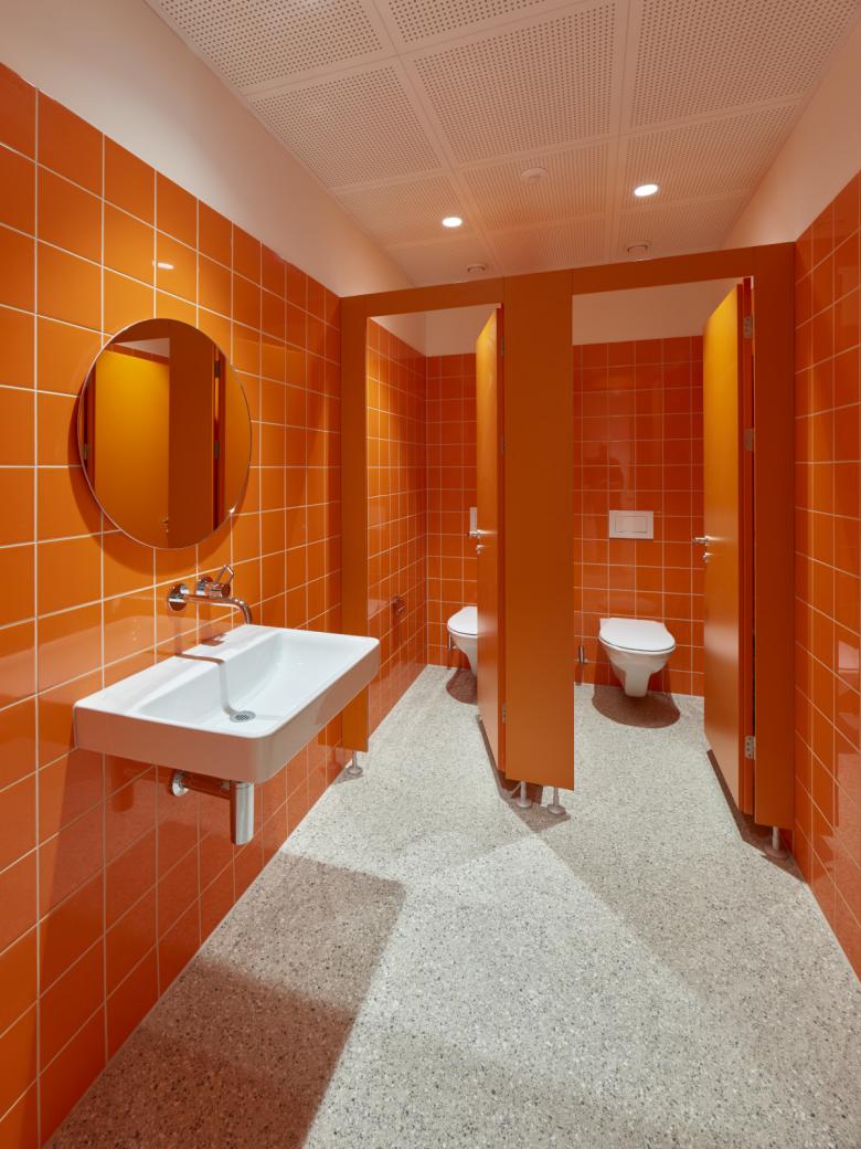 Beim Projekt Türli und Arni kam das BTA-Lüftungssystem CONCRETCOOL von Kiefer Klimatechnik zum Einsatz. Das TGA-Planungsbüro Berchtold aus Sarnen hatte bereits positive Erfahrungen mit diesem System und es daher speziell für dieses Projekt bei den Stuttgarter Lüftungsexperten angefragt. CONCRETCOOL nutzt die freie Kühlung und vereint die Bauteilaktivierung mit der Lüftungsfunktion. Das System bewährt sich bereits seit über 20 Jahren und ist ideal für Schulneubauten wie diesem. Denn für ein konzentriertes Arbeiten und Lernen und auch um eine mögliche virenbelastete Aerosolkonzentration zu vermeiden, benötigen Schulräume stets frische Luft. Durch den kontinuierlichen Austausch der Raumluft wird ein Anstieg des CO2-Gehalts in der Raumluft verhindert. Die Bauteilaktivierung mit Luft statt Wasser verwendet frische Außenluft als Energieträger. Diese steht an bis zu 70 Prozent des Jahres mit Temperaturen unterhalb von 12 °C kühl und kostenlos zur Verfügung. So werden die Räume mit Frischluft versorgt und gleichzeitig die Raumluftfeuchte im Sommer reduziert. Während des Betriebs der Anlage im Winter produzieren die Schüler mehr Wärme als durch die gut gedämmte Gebäudehülle entweicht. Dass daher nicht viel geheizt werden muss, war für die Architekten ein entscheidendes Argument für das CONCRETCOOL System.