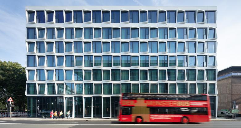 Das neue Atlantic verleiht Münster einen Hauch von Großstadt. Je näher man dem Hotel kommt, umso mehr kann man hineinsehen, umso willkommener wirkt es – egal von welcher Seite man sich nähert. Mit der facettenreichen, wandelbaren Fassadengestaltung wurde ein neuer architektonischer Hingucker und mit den öffentlichen Bereichen des Hotels ein Raum für die Bürger von Münster geschaffen. Das Hotel versteht sich nicht nur als privates Gästehaus, sondern mit öffentlichem Café, der Sky Bar und Co Working Spaces auch als Wohnzimmer der Münsteraner und als Anlaufstelle nach einem Spaziergang auf der berühmten Münsteraner Promenade.