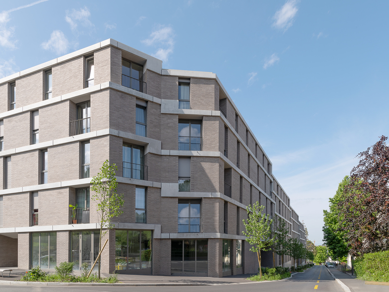 La durabilité de la construction est donnée d’abord par une intégration sensible dans le contexte au niveau urbanistique et social. Ensuite, la typologie des appartements, le choix des matériaux et le traitement des façades permettent une exploitation optimale de l’orientation et l’ensoleillement. L’énergie solaire directe, contrôlée par les avant-toits des balcons, entre au travers des grandes baies vitrées des séjours, et s’accumule dans la façade minérale en béton et en brique. L’inertie thermique et le confort acoustique participent à la qualité des appartements. La façade nord, plus fermée, protège des nuisances de la rue et des pertes thermiques.
