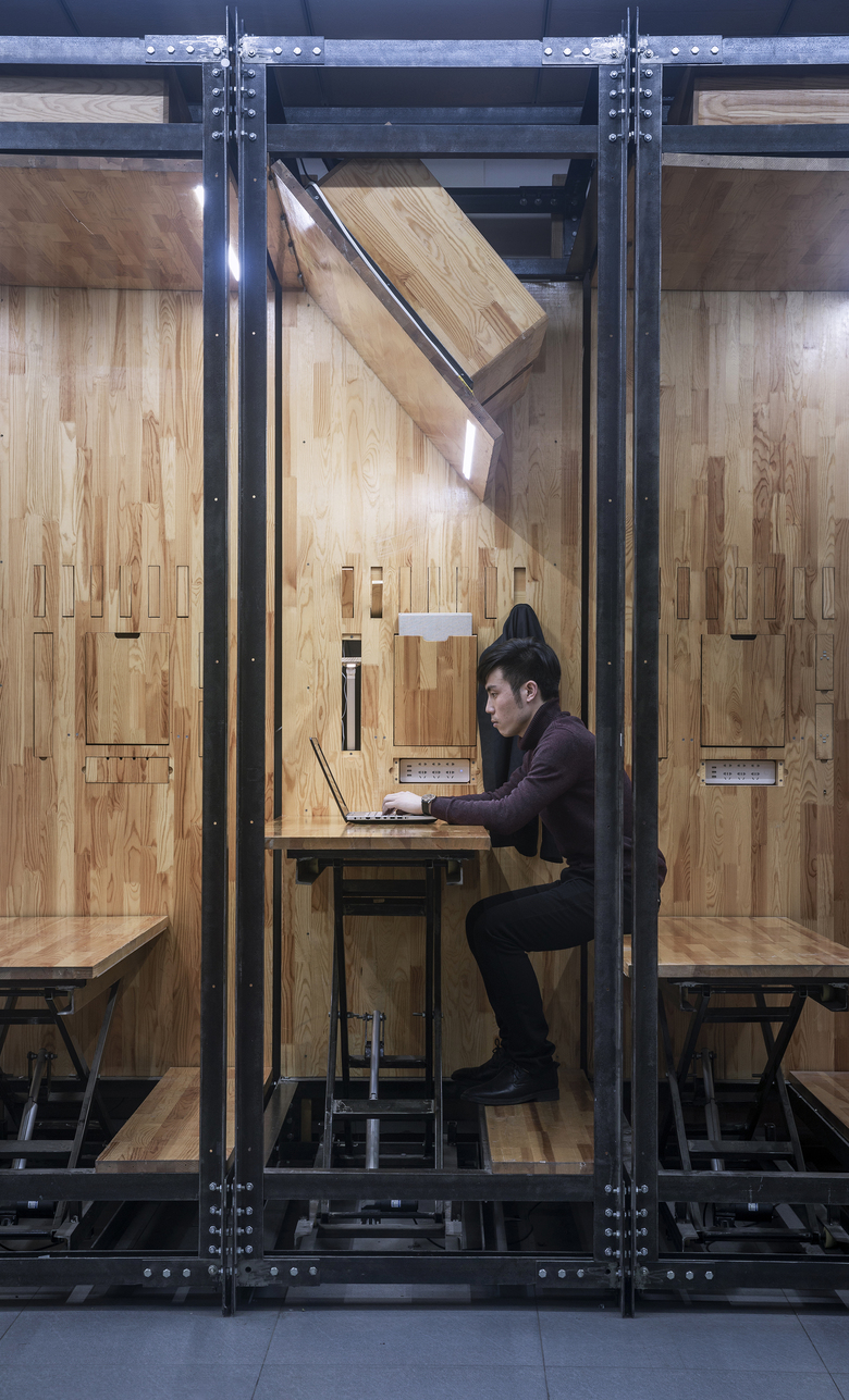 将这个理念延用到办公空间,是偶然也是必然。客户是图文印刷业的经营者,越来越数字化使得实物纸张印量锐减,有意在现有办公空间内分割小区域拓展设计部门,将单一的“印刷”往“印刷+设计”转变。新空间要精小,要区别现有空间,无法判断未来发展状况,要可空间还原。