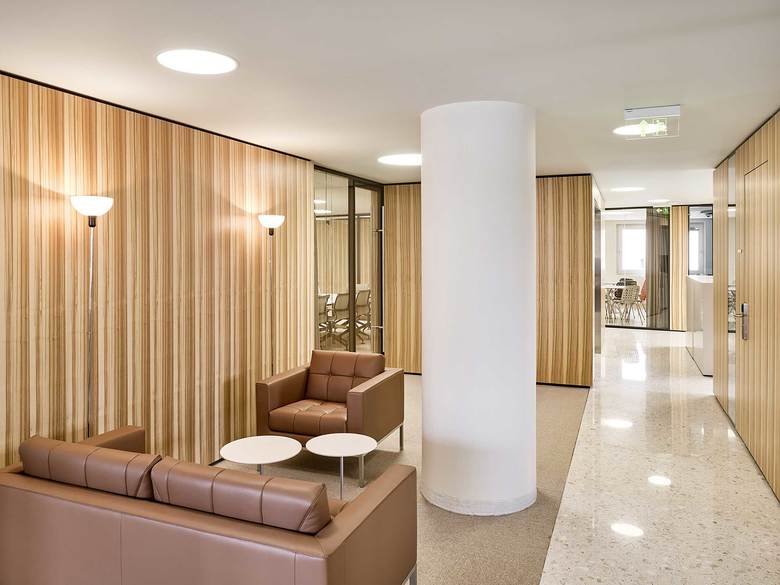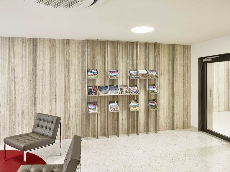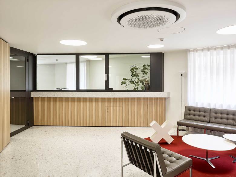 Das Konzept war es, eine Begegnungs- und Austauschplattform unter der Schirmherrschaft des Konsulats zu erschaffen und Schweizer Werte in Indien zu vertreten. Unter diesem Aspekt wurde ein übergeordnetes Materialkonzept ausgearbeitet, in welchem die verschiedenen Nutzer nuanciert zur Geltung gebracht werden konnten. Das um die zusätzlichen Nutzer erweiterte Konsulat erlaubt und verlangt mehr Offenheit zu den Kunden und unter den Abteilungen selbst. Die vier Abteilung sind um ein gemeinsames Zentrum organisiert – analog zu einem Dorf und dessen Hauptplatz. Durch räumliche Sichtverbindungen und die programmatische Durchmischung wird die Interaktion und Synergie zwischen den Abteilungen unterstützt und gefördert.