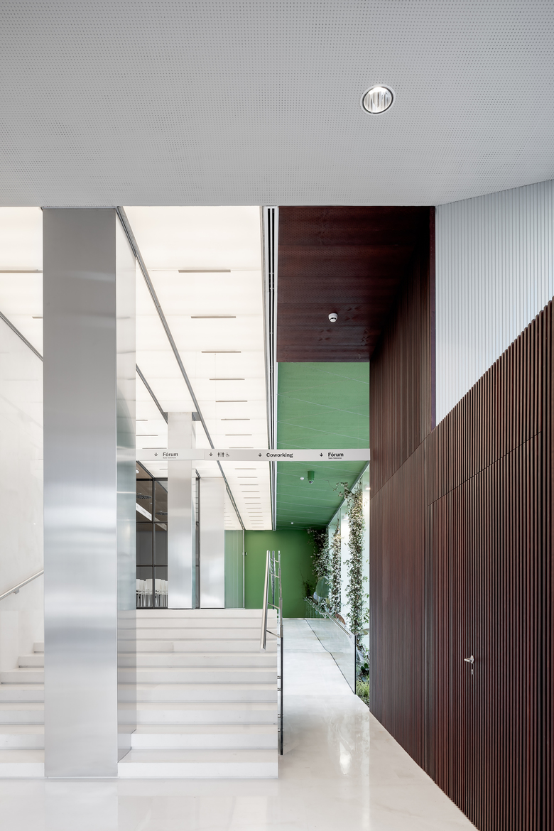 Beyond the Forum, we move into the more private areas, isolated from the external flow of the HUB: