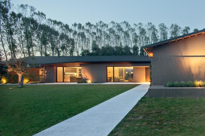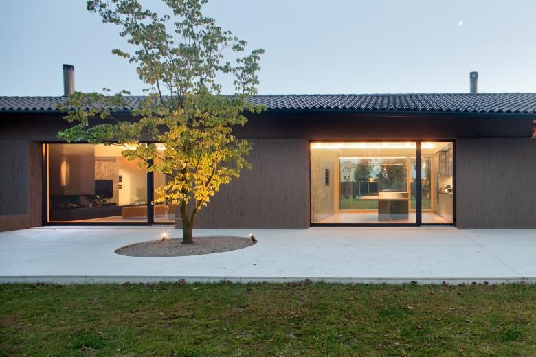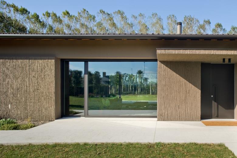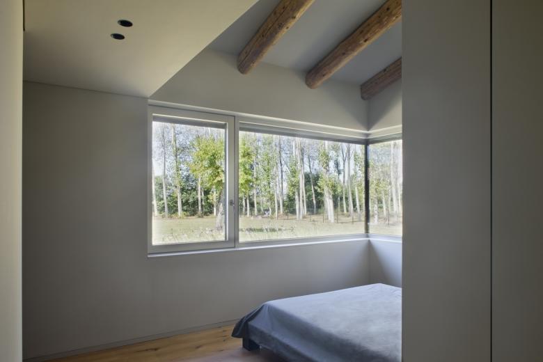 L'elevata permeabilità visiva ed i generosi apporti d'illuminazione naturale, caratterizzano tutti gli spazi interni: le grandi aperture vetrate della zona giorno contribuiscono a dilatare ulteriormente lo spazio, in continua mutazione durante le fasi della giornata. Costruire nella campagna veneta significa anche relazionarsi con le tecniche costruttive