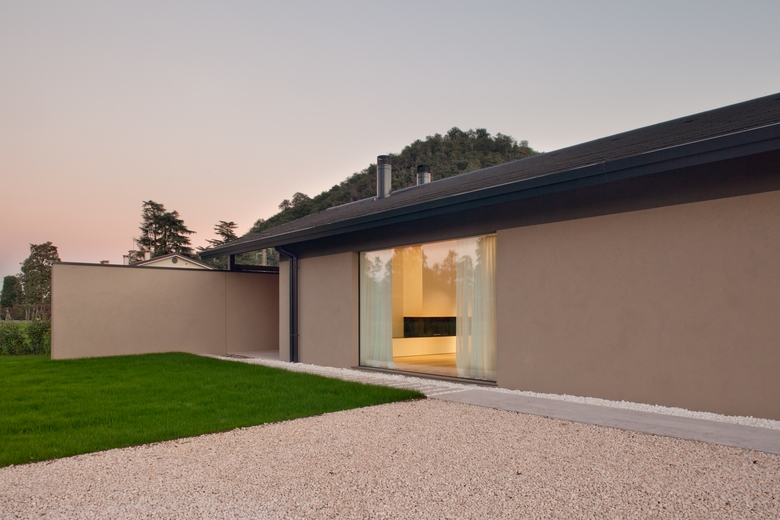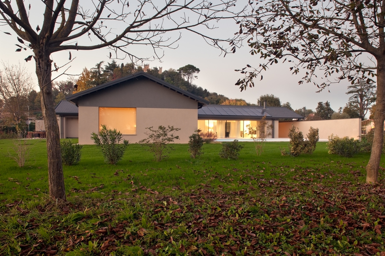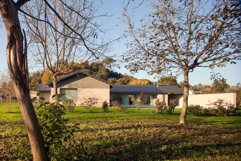 Il lotto d'intervento è collocato all'interno del Parco Regionale dei Colli Euganei, attorniato da verdi colline, sulla cima di una delle quali spicca la neogotica Villa Serenella. Il progetto sfrutta l'opportunità offerta dal sito di sviluppare l'abitazione in un unico livello, garantendo così uno stretto rapporto di continuità tra l'abitazione ed il verde circostante.