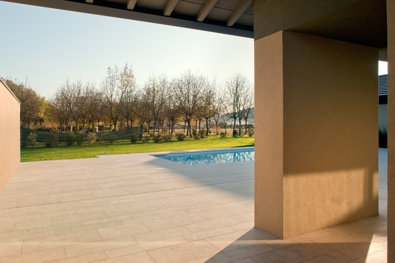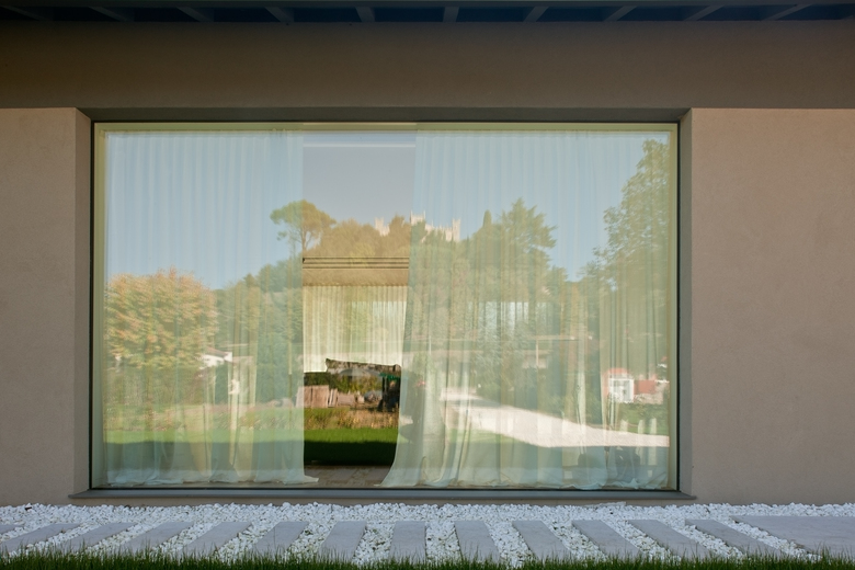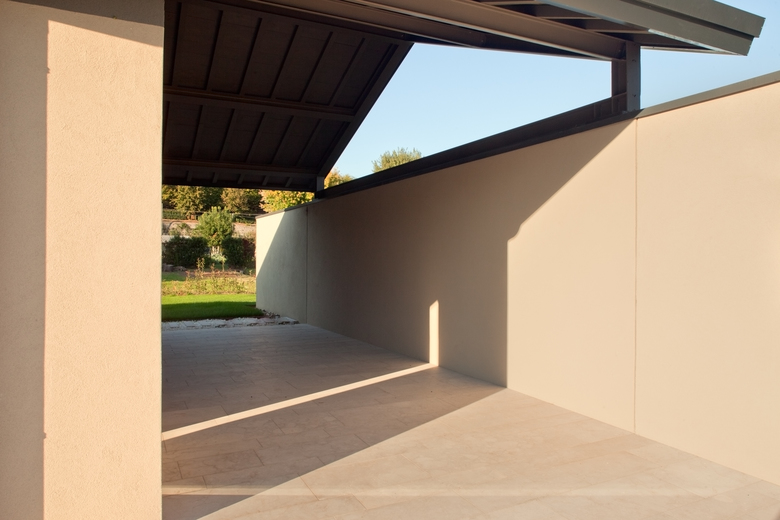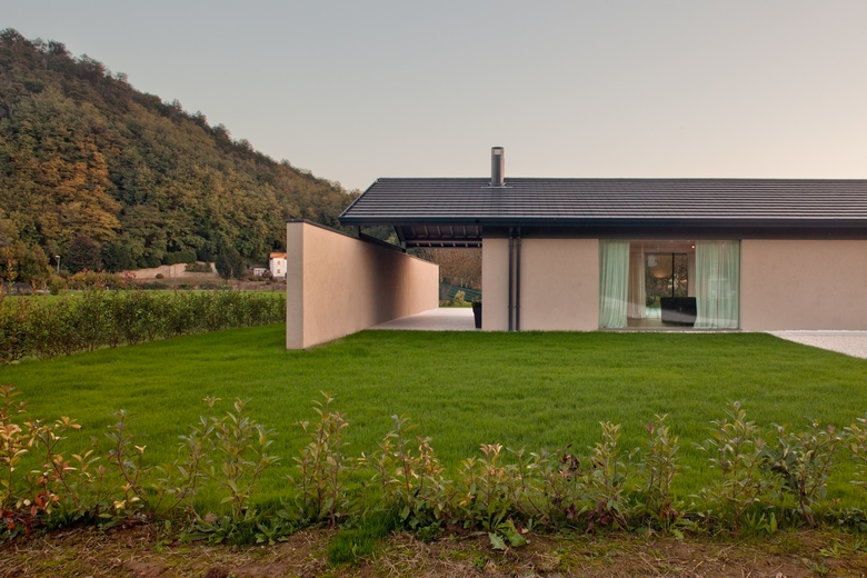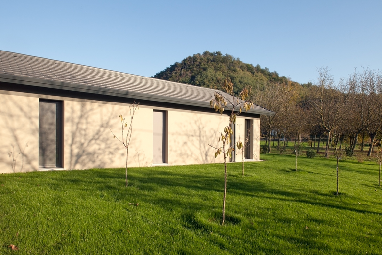 L'edificio si inserisce armoniosamente nel luogo, riprendendo i tratti tipici delle abitazioni rurali della zona agricola e gli elementi tradizionali, riattualizzandoli in chiave contemporanea.