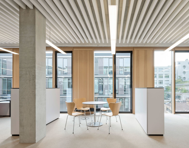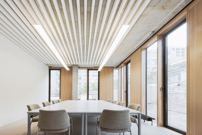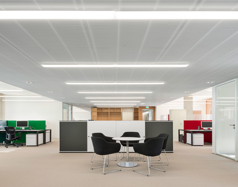 Zwei große Ziele hat sich das Stuttgarter Planungsbüro wulf architekten beim Bau der neuen Zentrale der Industrie- und Handelskammer (IHK) Region Stuttgart gesetzt: ein möglichst großes emotionales Wohlbefinden und ein niedriger Energieverbrauch. Weil Licht und Akustik dabei eine wichtige Rolle spielen, kommen in dem 7800 Quadratmeter großen Neubau über 800 Nimbus LED-Leuchten und mehr als 100 Rossoacoustic Paneele der Nimbus Group zum Einsatz.