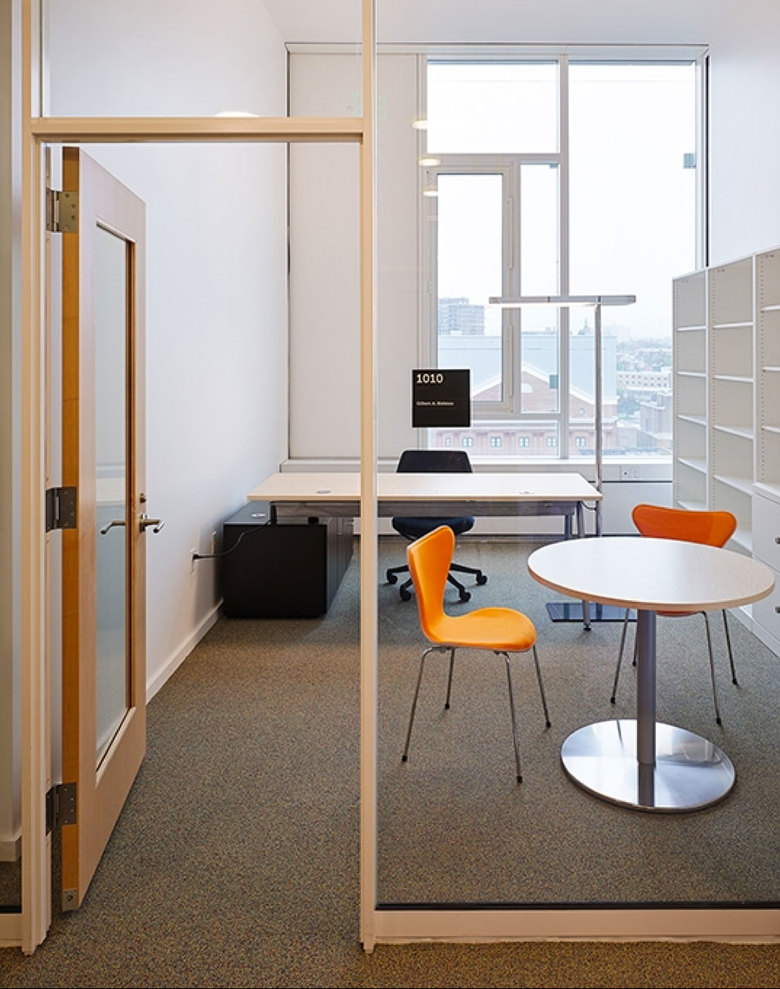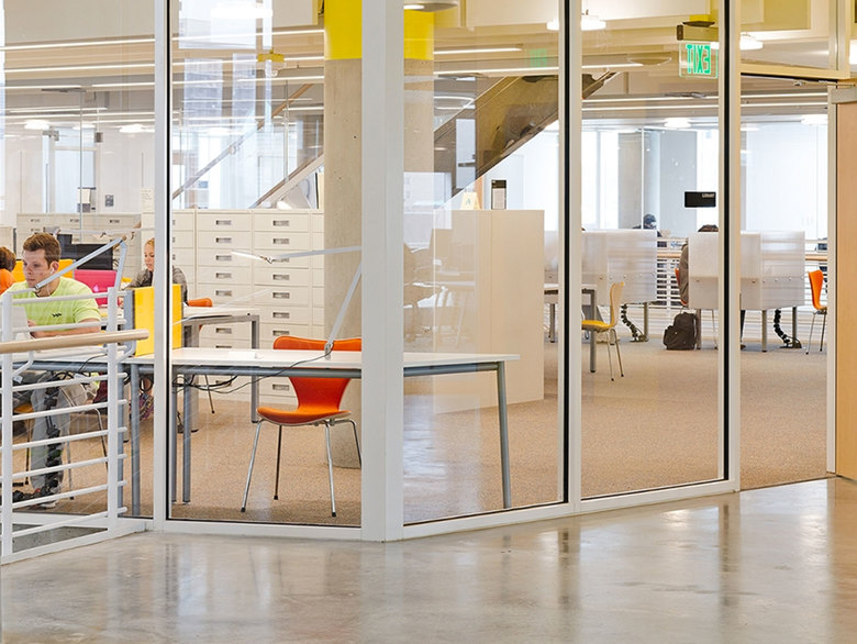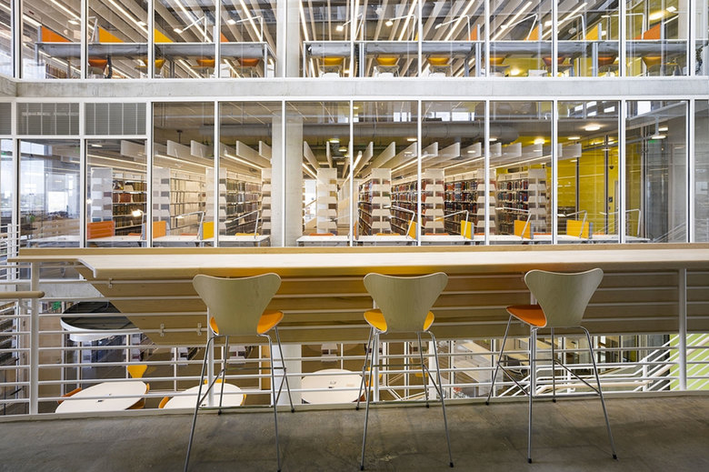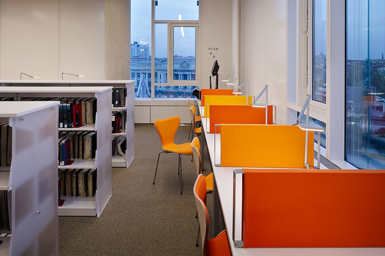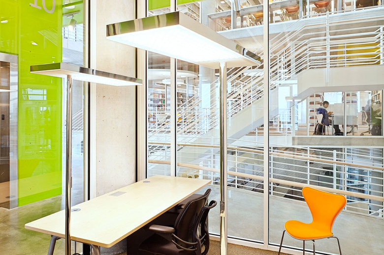 Diese Rechnung überzeugte Bogomolny. Seine Wahl fiel auf die Stehleuchte Office Air LED und die flexible LED-Tischleuchte Roxxane Home. Beide erhellen nun in weiten Teilen des Neubaus die Büros und die Studienplätze in der großzügig gestalteten Bibliothek.