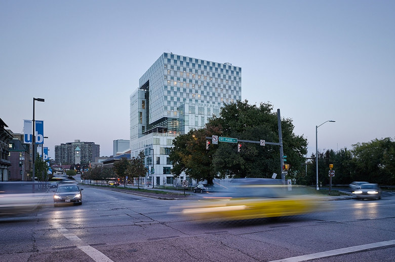 Fast 300 Nimbus LED-Leuchten erhellen den Neubau der juristischen Fakultät an der University of Baltimore, geplant von Behnisch Architekten und Ayers Saint Gross. „Aus bautechnologischer Sicht haben die USA großen Nachholbedarf“, stellt Architekt Stefan Behnisch fest. Dennoch sei es gelungen, in Baltimore ein Gebäude zu errichten, das auch in Europa als wegweisend gelten könne. Der Grund: Robert L. Bogomolny, Präsident der University of Baltimore, war von Beginn an ein Bauherr mit großer Begeisterung für innovative Ideen und neue Raumkonzeptionen.