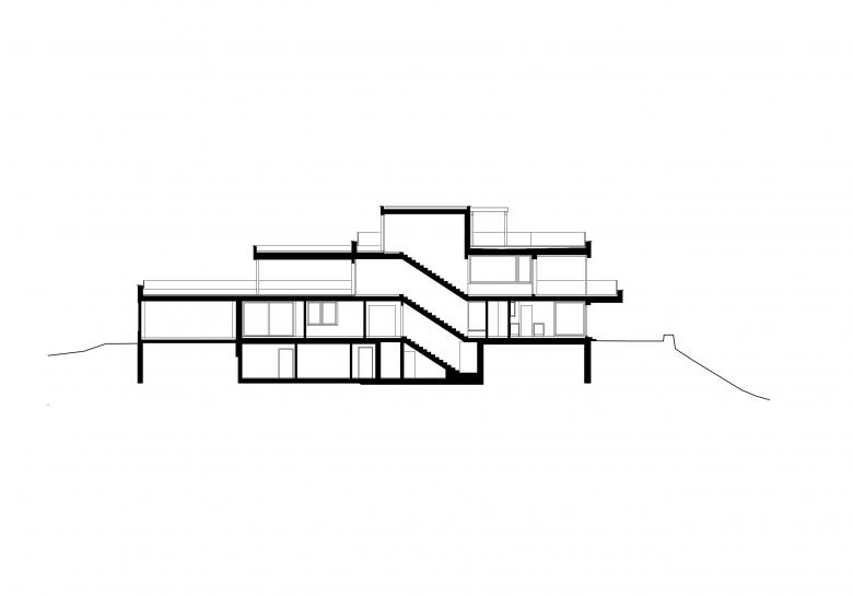 Über eine sich kreuzende Treppe (venezianische Treppe) erhalten beide Wohneinheiten allseitig ausgerichtete Räume über alle Geschosse. Die Dachterrasse befindet sich oberhalb des Nachbargebäudes und geniesst einen ungehinderten Blick in die südlich gelegene Hügellandschaft.
