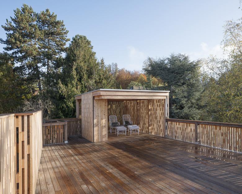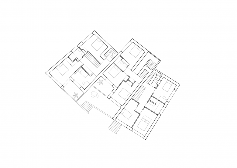 Un ensemble de 3 maisons mitoyennes remplace une villa des années 50 dans le quartier résidentiel dominant le pont de Chailly. Le projet exploite au maximum le potentiel de densification de la parcelle tout en prenant soin par sa forme et sa matérialité de s’insérer dans son contexte pavillonnaire et verdoyant. Des décalages en plan et en coupe réduisent l’échelle et renforcent la domesticité de l’ensemble. Ils créent des terrasses qui prolongent les pièces à vivres et multiplient les orientations notamment un dégagement vers l’ouest pour la maison du milieu.