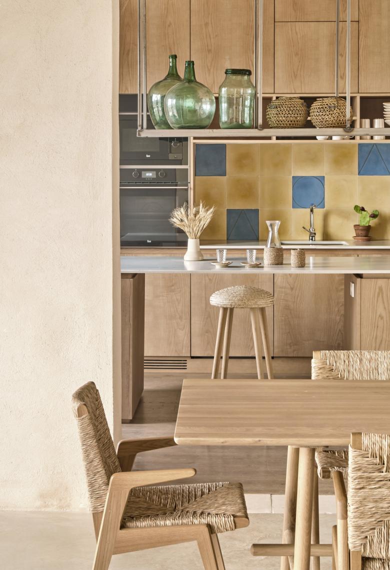 La casa adopta una estética propia de la arquitectura tradicional mallorquina. La aplicación del detalle constructivo típico y de elementos tradicionales, así como el uso de materiales naturales y locales como la madera, el enfoscado de mortero de cal rústico, la teja cerámica, la piedra de marés, el cañizo…contribuye a la integración con el entorno pero también al kilómetro cero.