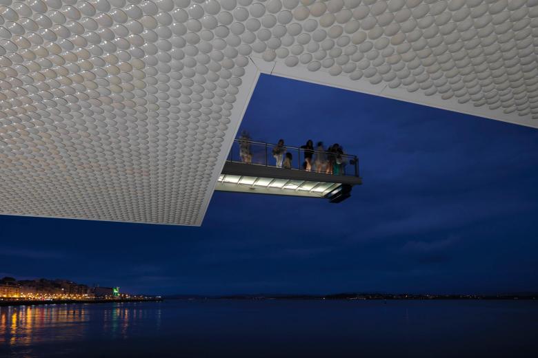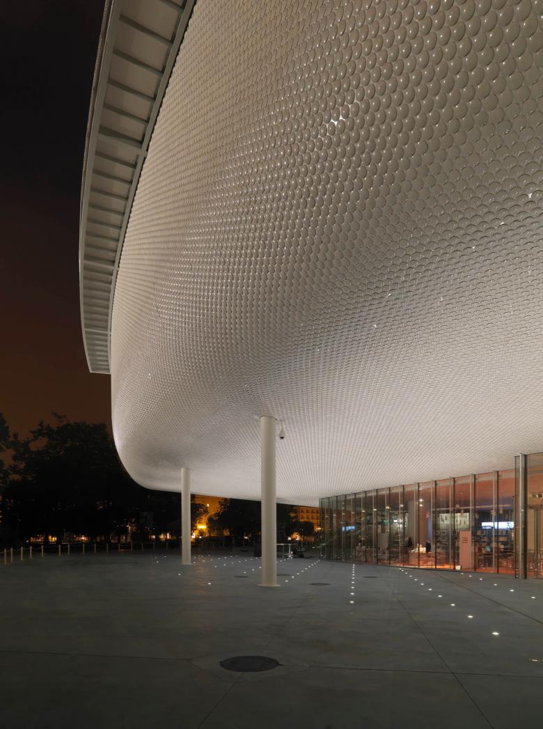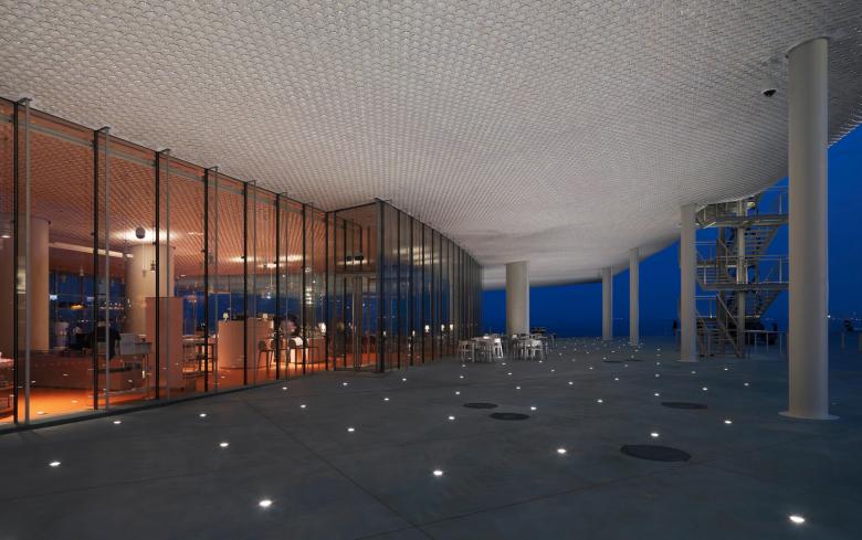 The lighting design creates a relationship at night that links the new building, the sea and the city, without being overly obvious and giving the area a new character. The light explores the feeling of lightness, reinforcing the architectural concept. Interacting with the pearl coloured tiles and the translucent glass, the light transforms the building into a “ship” anchored in a sea of reflections.