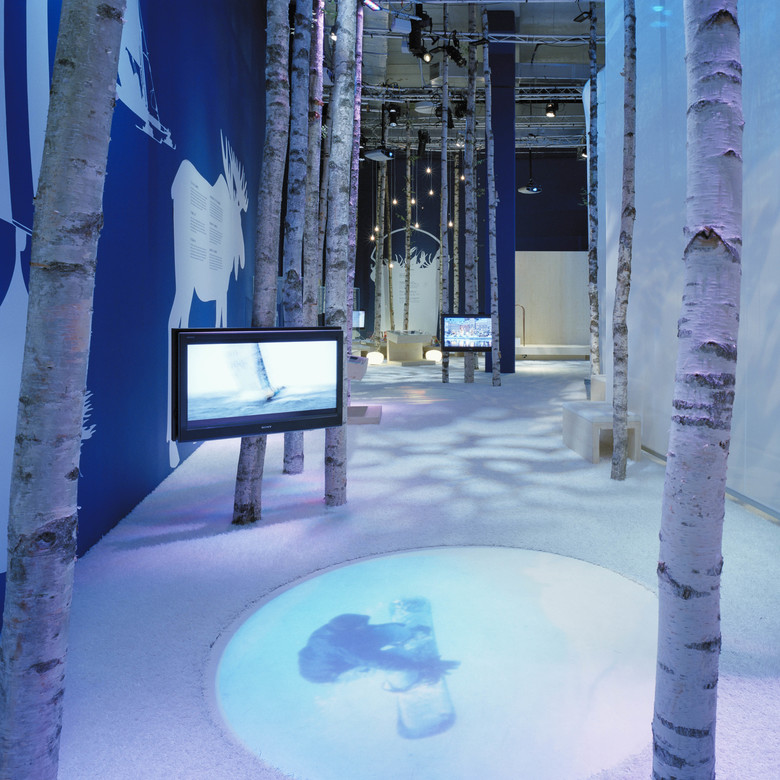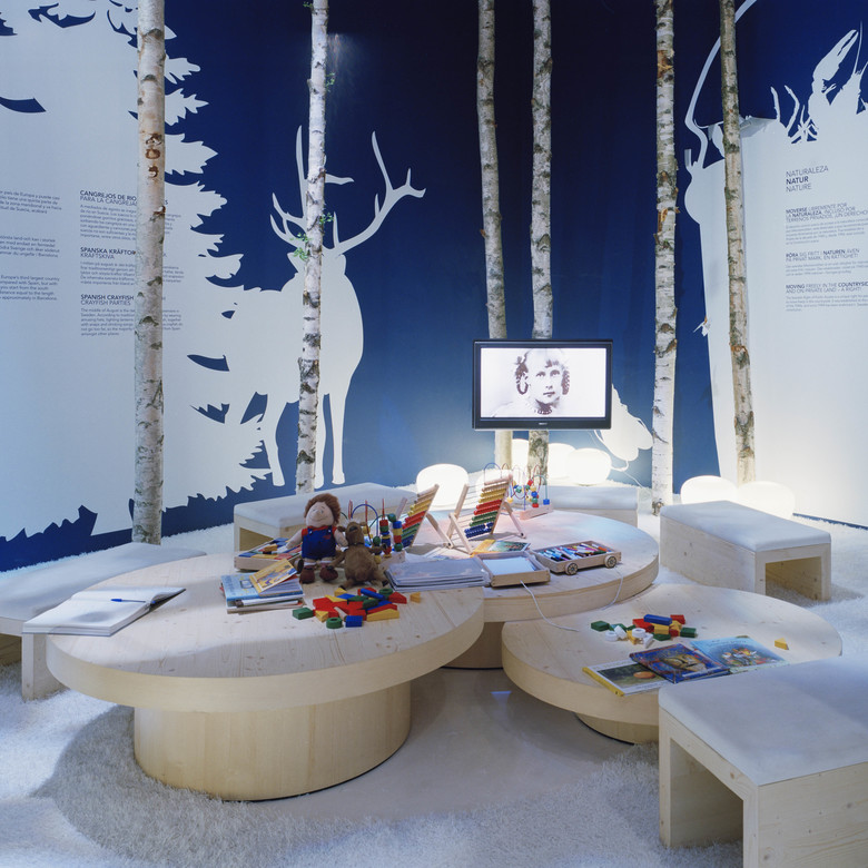 Exhibition area of 650 m² at world fair ”Expo Zaragoza” including; pavilion, displays, movie projections, lighting, sound and graphic design. The orchestrated environments reflect the interaction between natural elements and high tech gadgets and are inspired by Swedish qualities of honesty and friendliness.