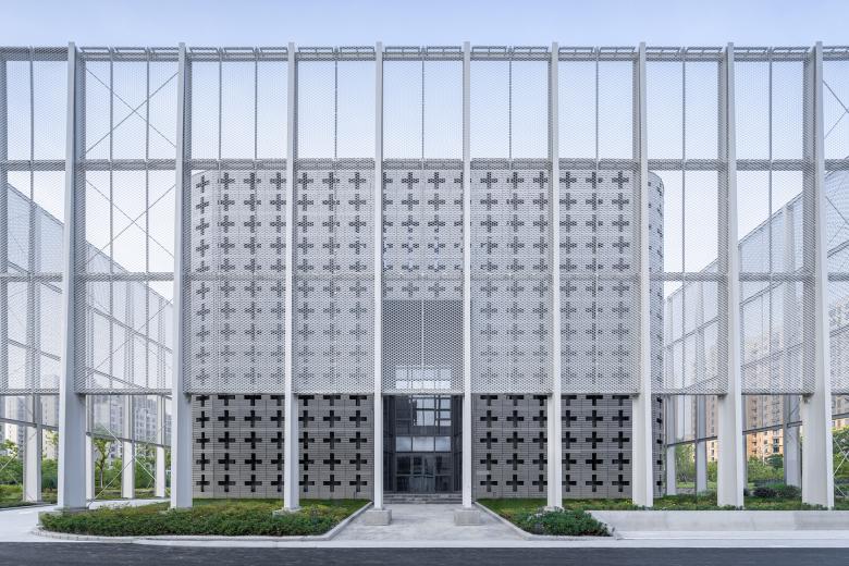 I used expanded mesh instead of perforated aluminum or solar panels for the "veil", because it is cheaper and reduces wind resistance better. To ensure the strength and safety of the "veil", I also agreed to enlarge the cross-section of the supporting columns of the "veil" while adding diagonal struts to the columns at intervals. In order to avoid additional plan approvals and cost increases due to overruns, I also agreed to adding columns on both sides of the main auditorium to avoid a large single-span space and the addition of two large beams across the curved ceiling which would interrupt the transverse skylight. Still for cost control, I replaced the rose wall with a floral brick wall. Some adjustments, however, were rejected by me. I disagreed with an architectural system that would have supports sticking out from the main structure to help support the veil because I like clear boundary definitions.