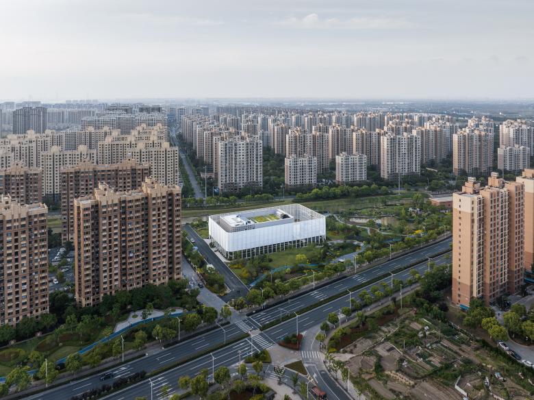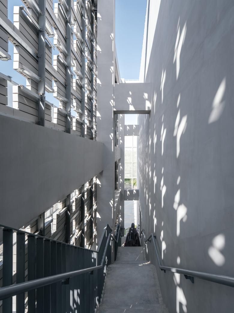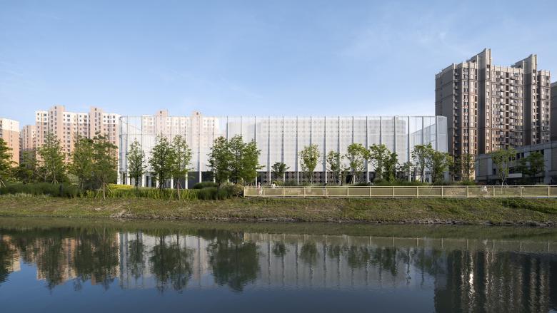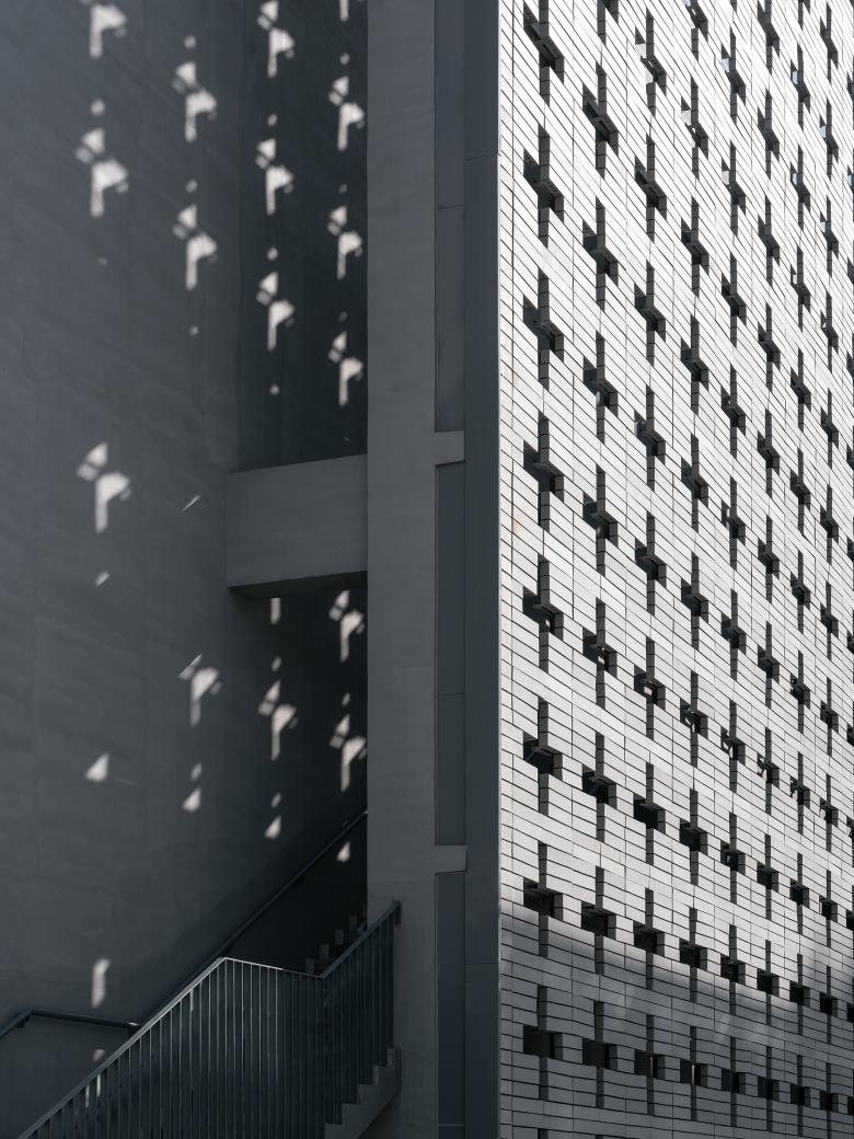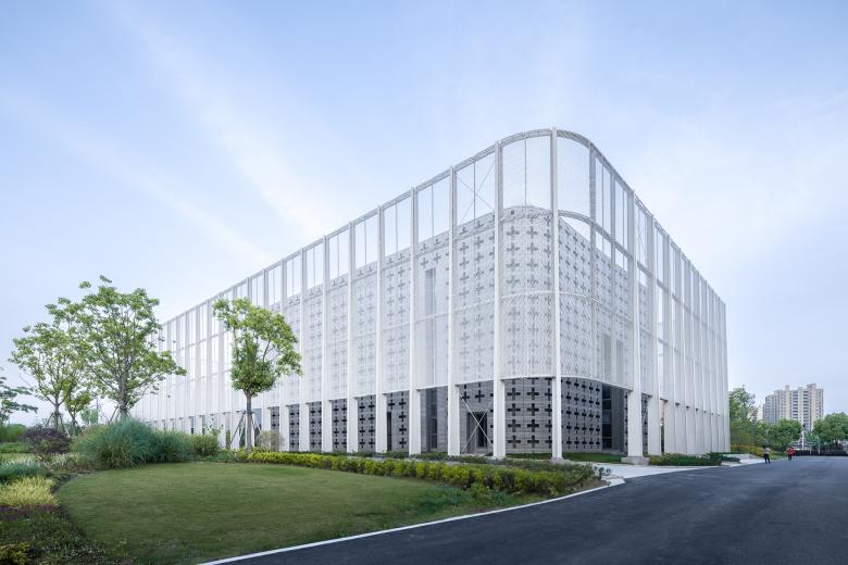 The brief called for the main and ancillary buildings to be separated. I decided to use the 16.7m high main hall as the core of the main building, inserting offices and other facilities on its west and north sides while placing the small auditorium on the highest level of the office area to create a vertical community. And the ancillary building is the canteen. Treating the entire site as a building called a place is my most significant strategy. I have erected a translucent enclosing "veil" as a visual boundary around the architectural control line, while the main and ancillary buildings are buildings within this field defined by this "veil". Together, with the visual boundary of the "veil", they form a complete architectural expression, a complete place.