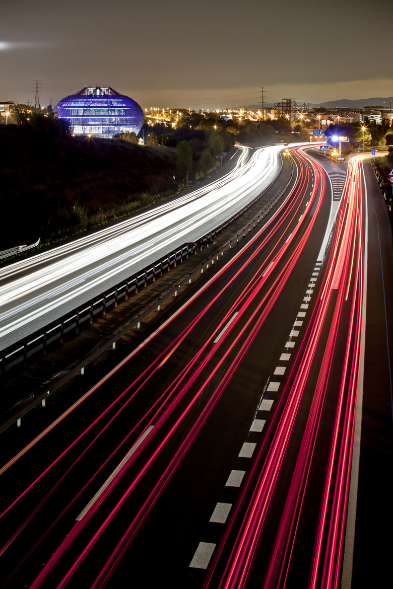 The new iGuzzini Illuminazione Ibérica S.A. headquarters is located between AP-7 and C-16 highways (Barcelona metropolitan roads). The building has two parts, each with a different function: one is low, extensive and underground, with no natural light and built in concrete; the other is spherical and with a glass shell, floating over the landscape.