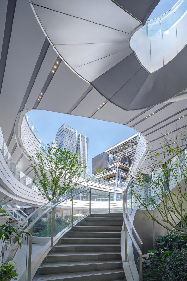 Shanghai Suhe MixC World is one of Kokaistudio’s most innovative shopping mall project. It is a public space for fun and relaxation. As transplanted trees grow, they will provide welcome shade for green land goers’ comfort and enjoyment. In a city as dense as Shanghai, and where a majority of residents do not have access to a private garden, green lands are of vital importance for recreation, wellbeing, and protecting the local environment.