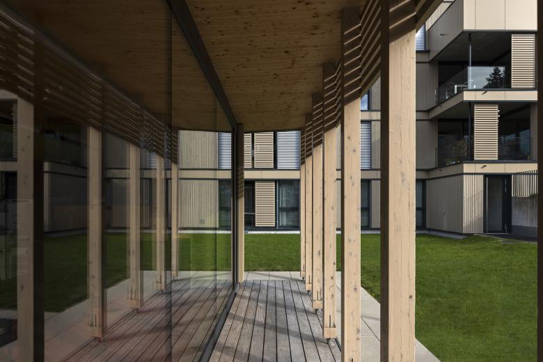 Im Zentrum steht ein hölzerner Pavillon. Dieser steht allen Bewohnern für Feste, Grillabende und Kindergeburtstage zur Verfügung.