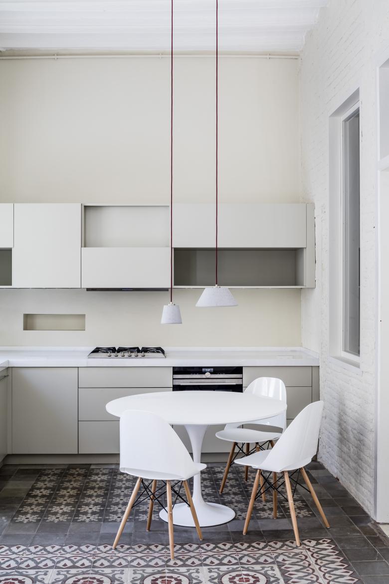 The modernist apartment located on the main floor of the old town of Barcelona, adapts with the renovation to the needs of its new occupants. The original charm of the apartment is maintained, with high ceilings and generous spaces, combined with the introduction of contemporary and functional elements in the kitchen area and bathrooms.