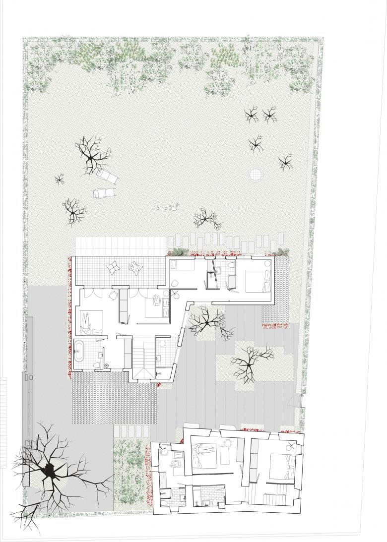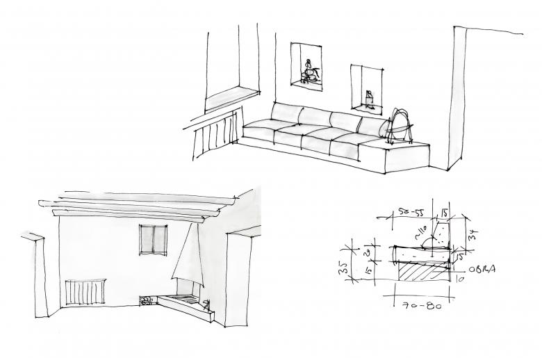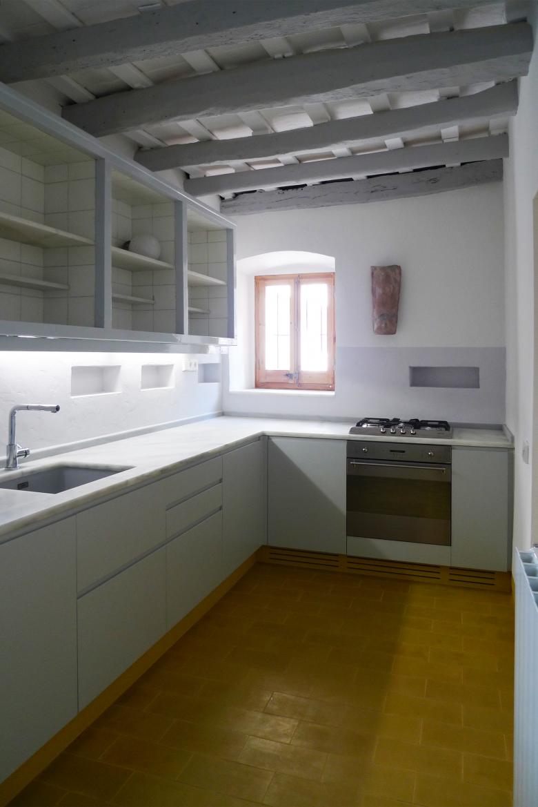 The starting point is an 18th-century farmhouse. The guiding principle of the design lies in leaving the materials untreated and in their natural state. Therefore, the intervention focused on the renovation of the walls and finishes, as the house required immediate refurbishment. The wooden beams are left exposed, accentuating the materiality of the visible construction element. In contrast to these, the mustard-colored hydraulic tile flooring engages in a play of harmonious and tranquil contrasts. After the project, the house retains its period charm with touches of color and modernity, allowing it to be inhabited with great comfort.