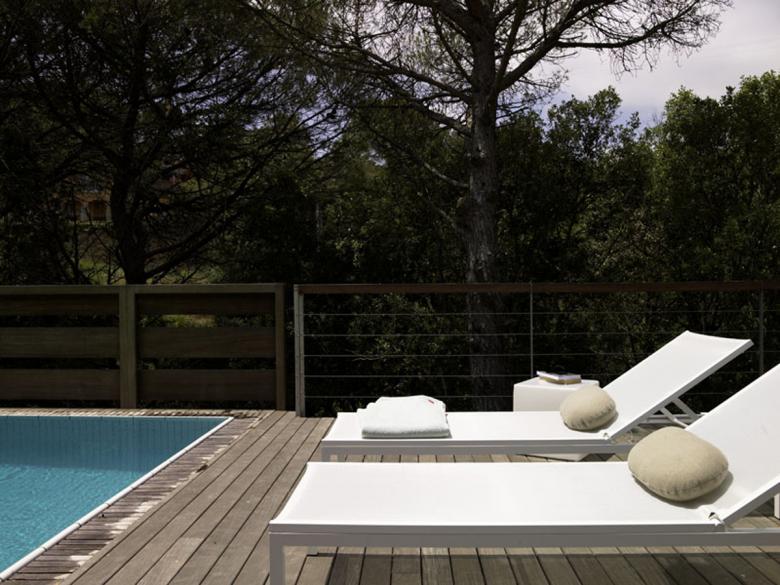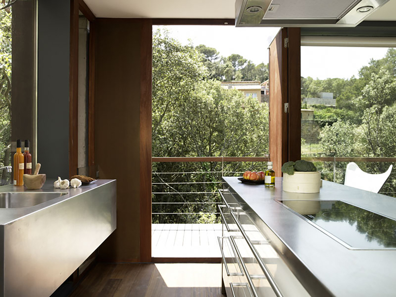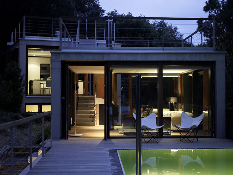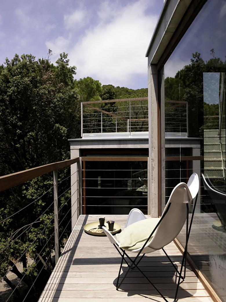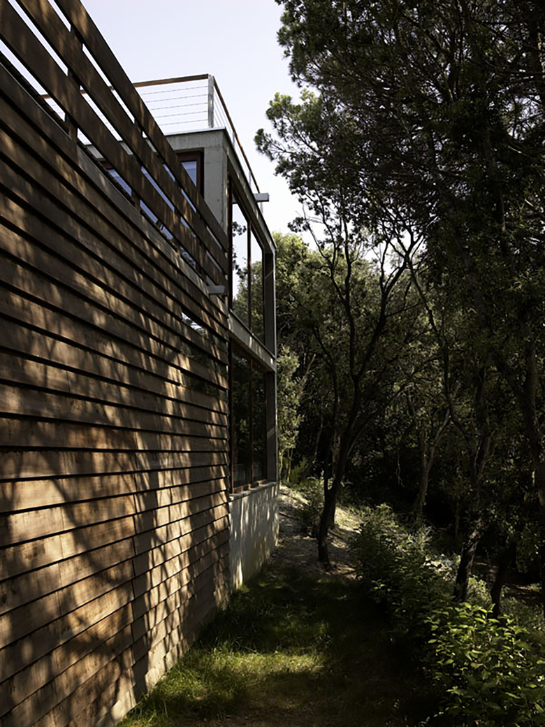 Perched 200 meters above sea level, offering breathtaking views of spectacular coves – a typical landscape of the Girona Costa Brava – is this residence, a collaboration between architects Estanislao Puig, Barbara Noguerol, and Sandy Brunner. The land features a steep slope facing north, covered by a forest of holm oaks, cork oaks, and oaks. Access is through a road at its lowest point, from which, in just ten minutes, you can reach unique beaches with crystal-clear waters surrounded by lush pine forests.