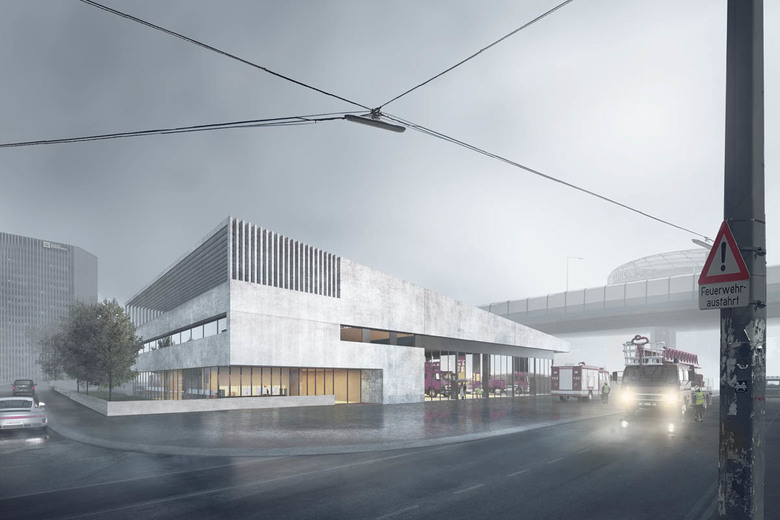 Alles unter einem Dach. Eine klare Organisation kann Leben retten! Im EG befinden sich die Büros. Von den Ruhebereichen im 1. OG und den Aufenthaltsräumen mit der Terrasse im 2. OG gelangt man über zwei Schleusen auf kürzestem Weg zu der Halle mit den Einsatzfahrzeugen.
