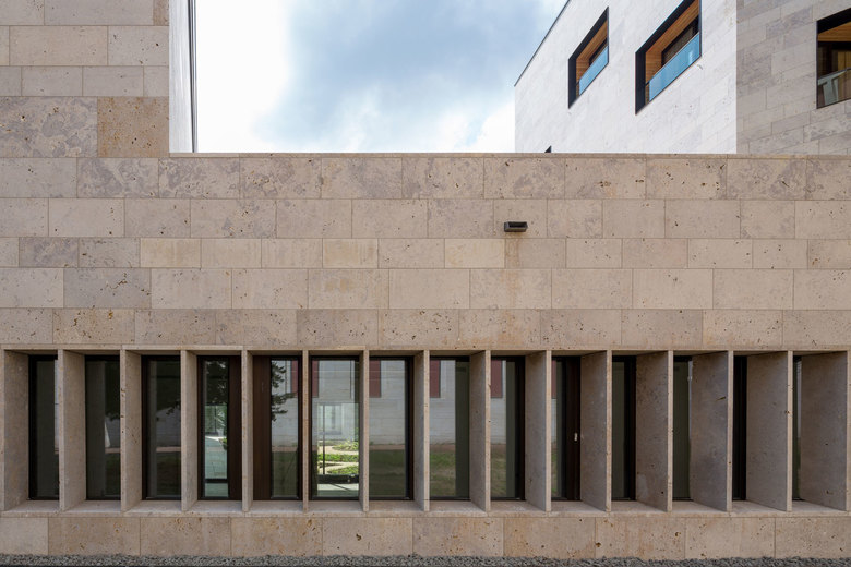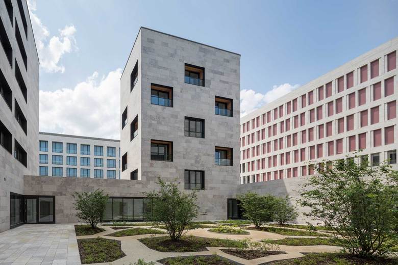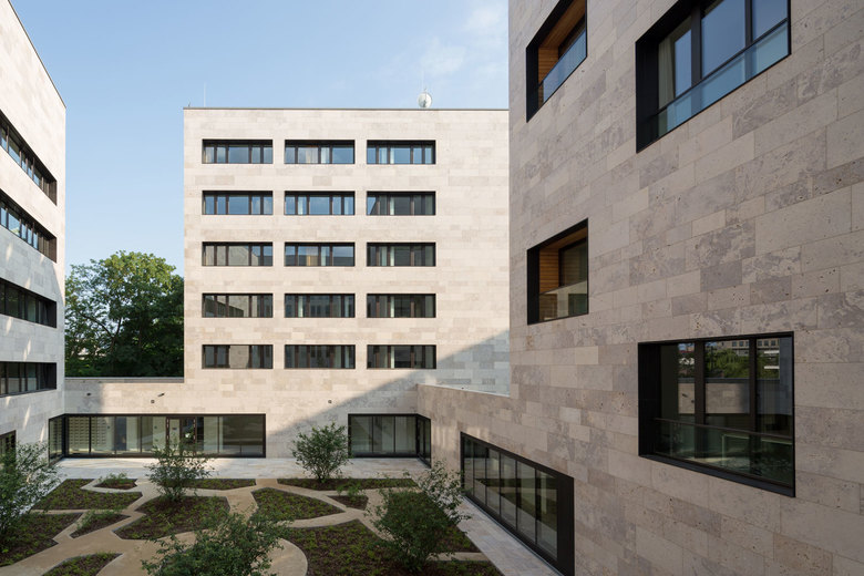Bei dem städtebaulichen und architektonischen Konzept für das Institut für europäische Rechtsgeschichte ging es darum, eine Balance zu finden zwischen dem verständlichen Anspruch der Max-Planck Gesellschaft nach Eigenständigkeit und der städtebaulichen Intention, auch diesen Baukörper als Teil des Ensembles des neuen Campusgeländes mit dem dominierenden Bau der Zentrale der IG Farben zu begreifen.